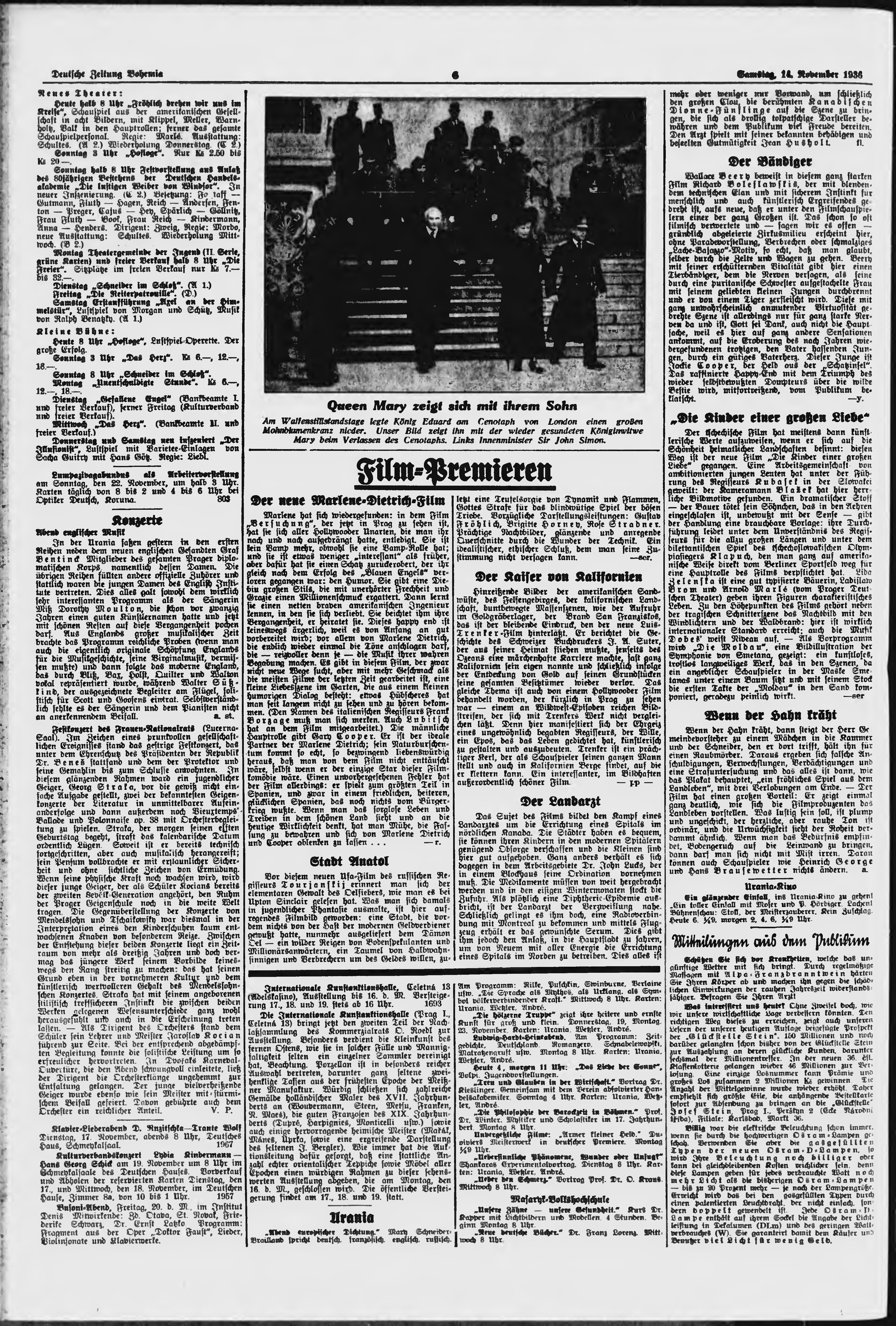 * Datum vydání výtisku: 14.11.1936 Číslo výtisku: 265 Poznámky k výtisku: ranní vydání;