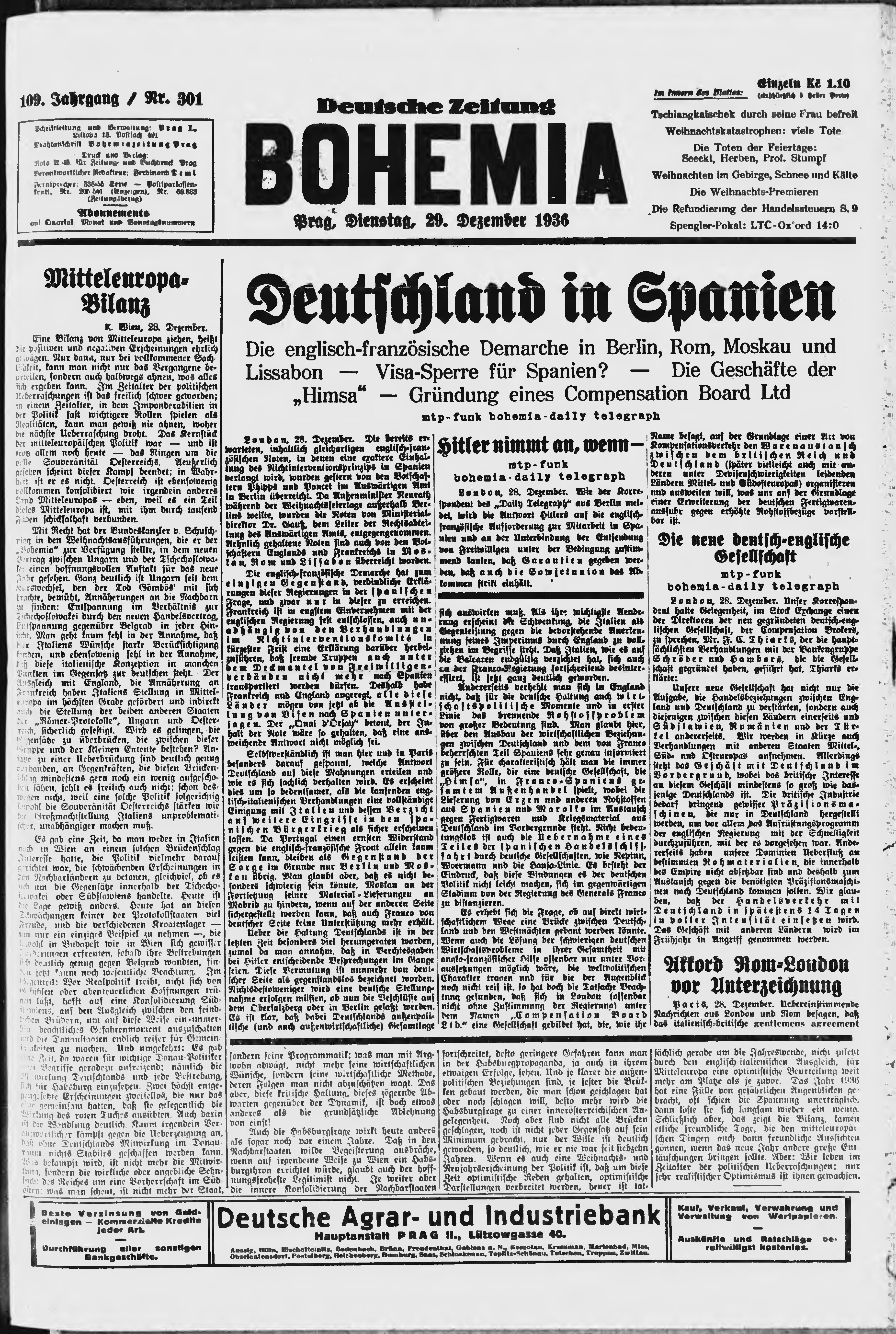 * Datum vydání výtisku: 29.12.1936 Číslo výtisku: 301 Poznámky k výtisku: ranní vydání;