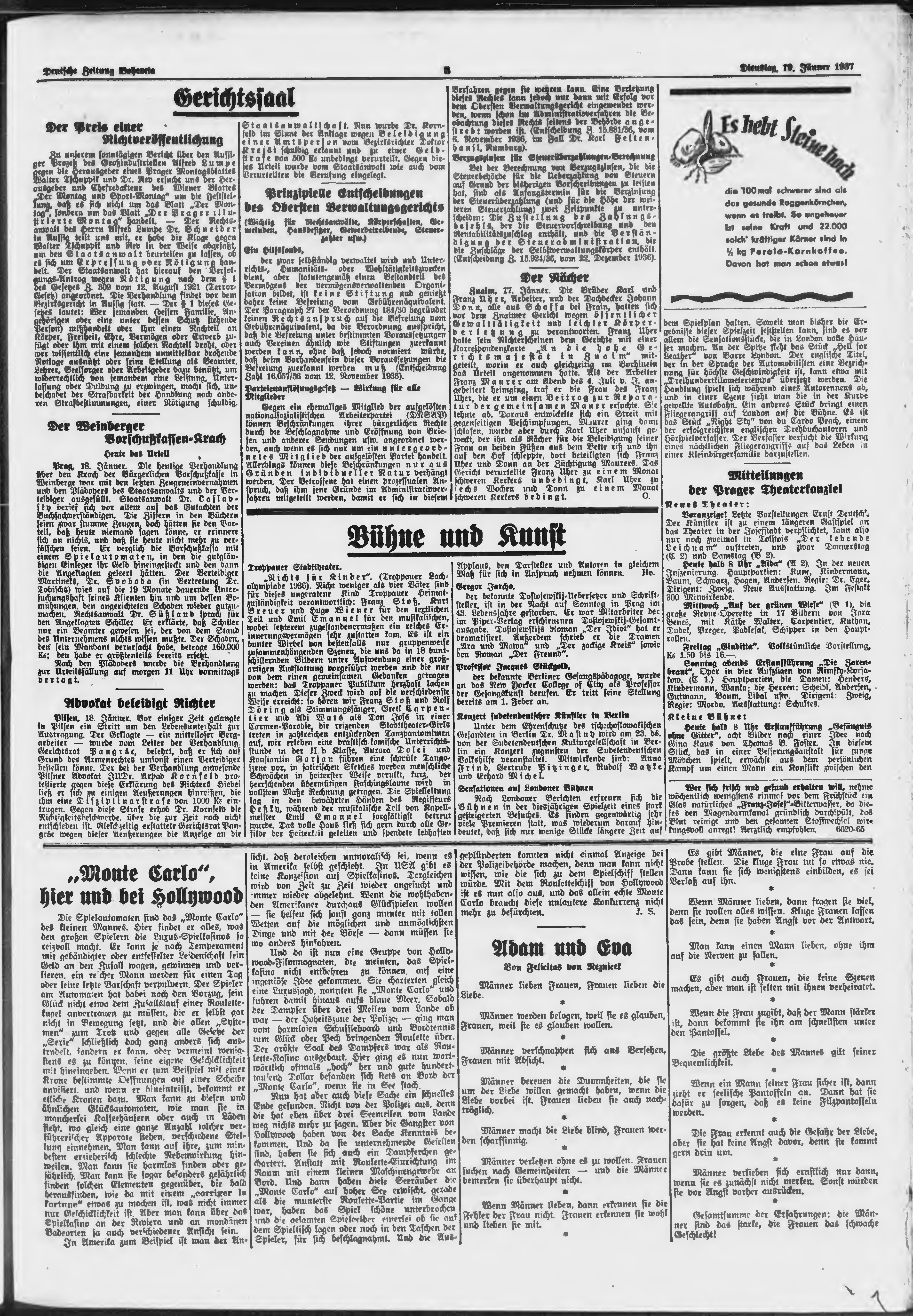 * Datum vydání výtisku: 19.1.1937 Číslo výtisku: 16 Poznámky k výtisku: ranní vydání;