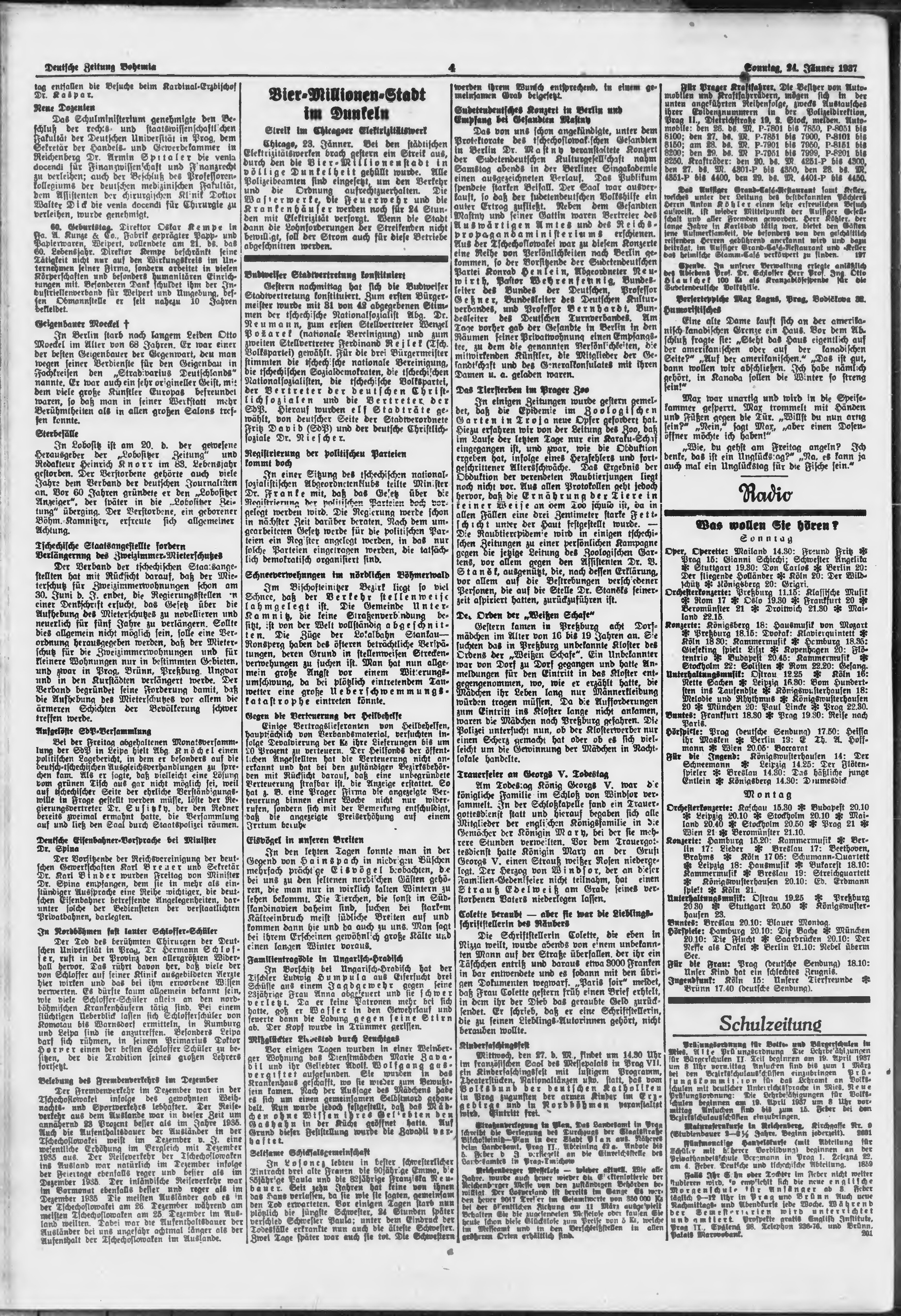 * Datum vydání výtisku: 24.1.1937 Číslo výtisku: 21 Poznámky k výtisku: ranní vydání;