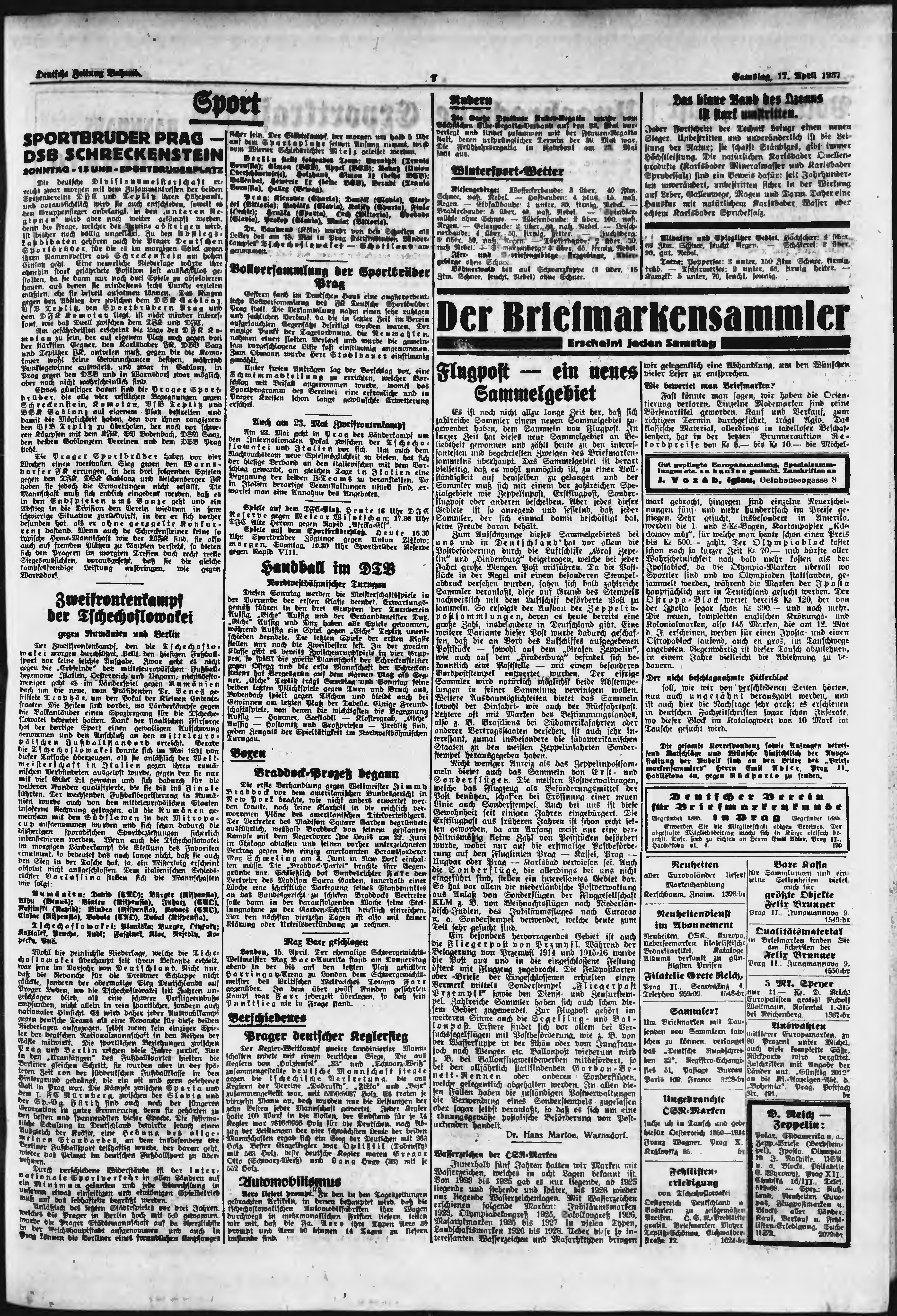 * Datum vydání výtisku: 17.4.1937 Číslo výtisku: 91 Poznámky k výtisku: ranní vydání;