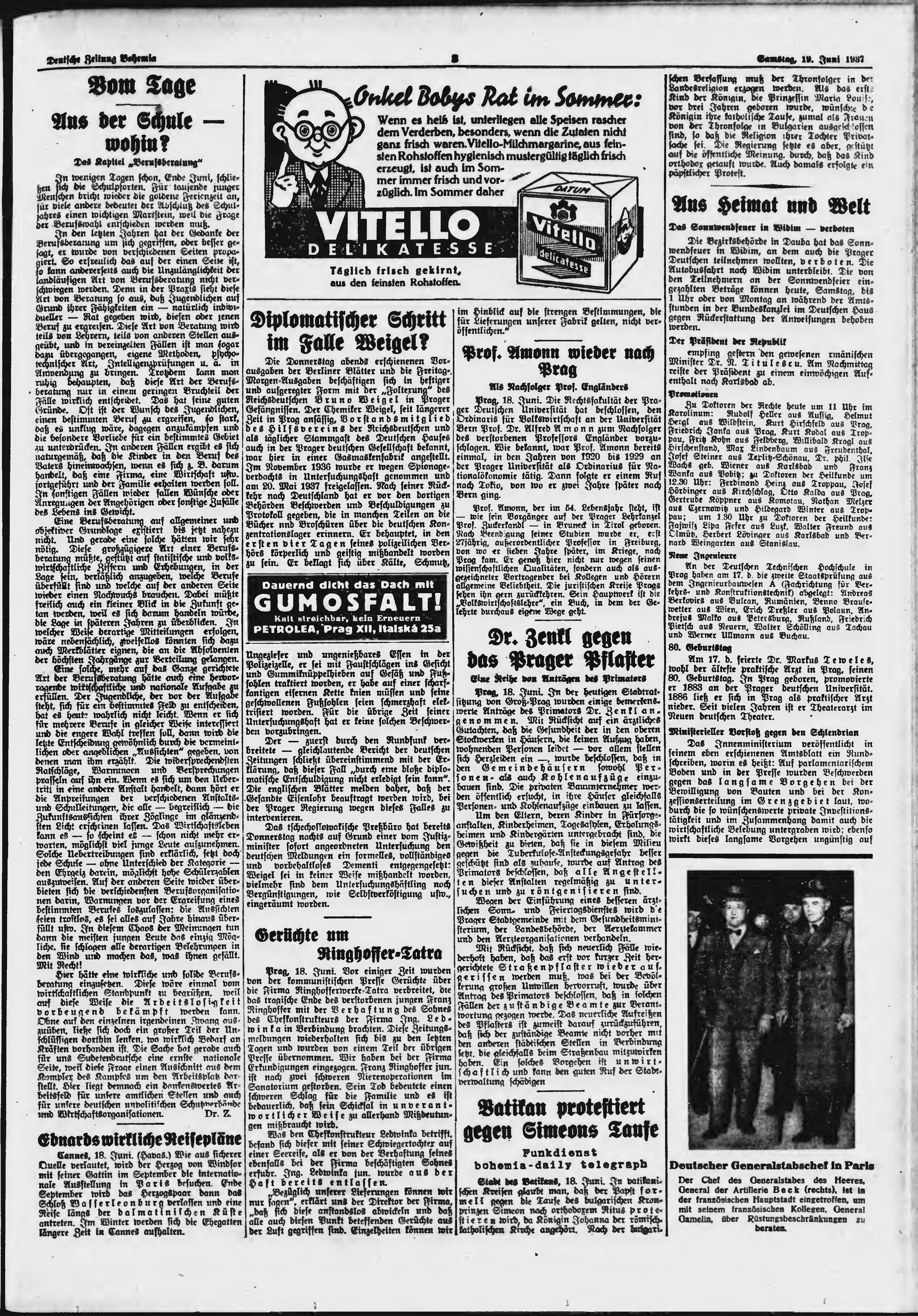 * Datum vydání výtisku: 19.6.1937 Číslo výtisku: 143 Poznámky k výtisku: ranní vydání;