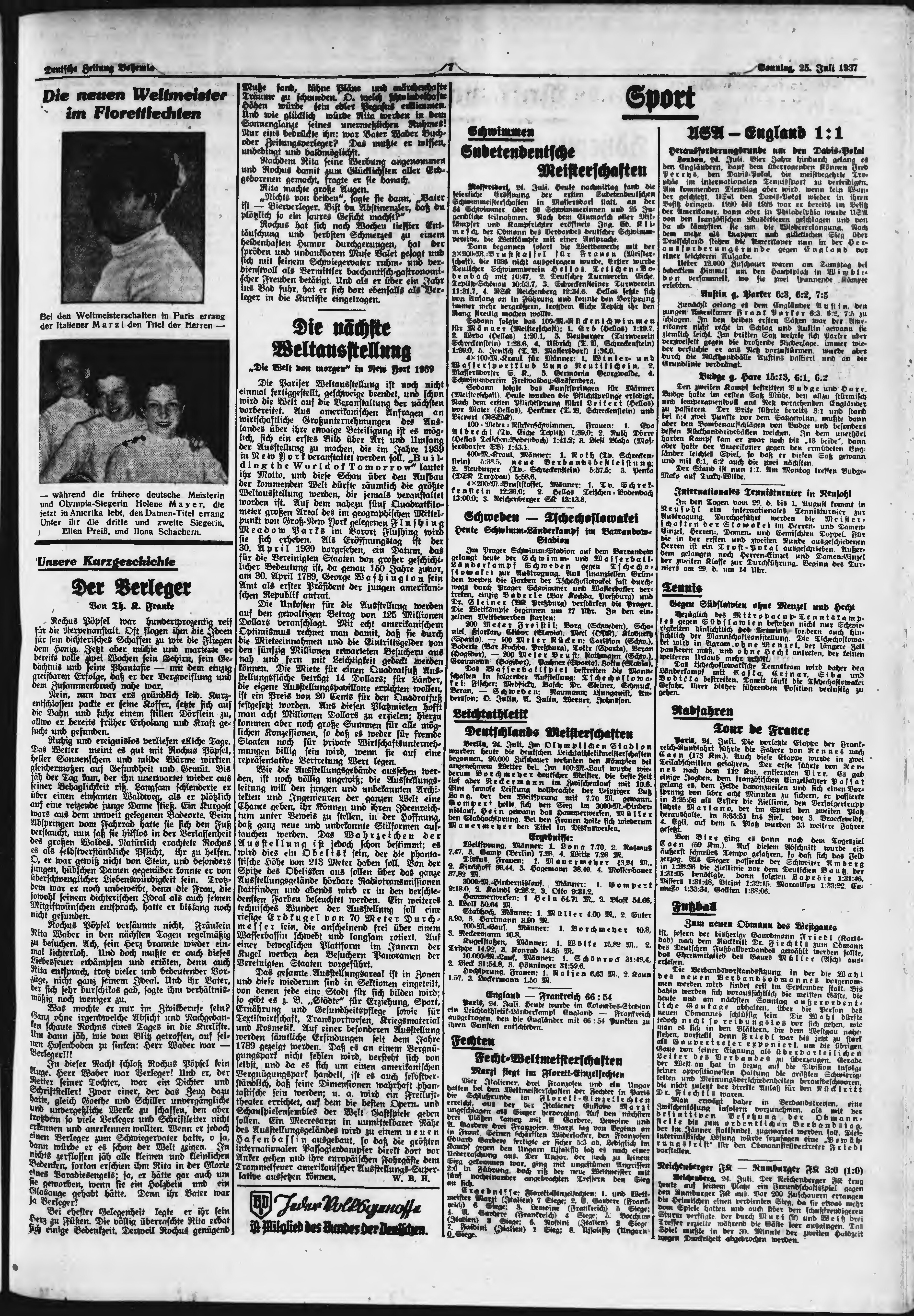 * Datum vydání výtisku: 25.7.1937 Číslo výtisku: 173 Poznámky k výtisku: ranní vydání;