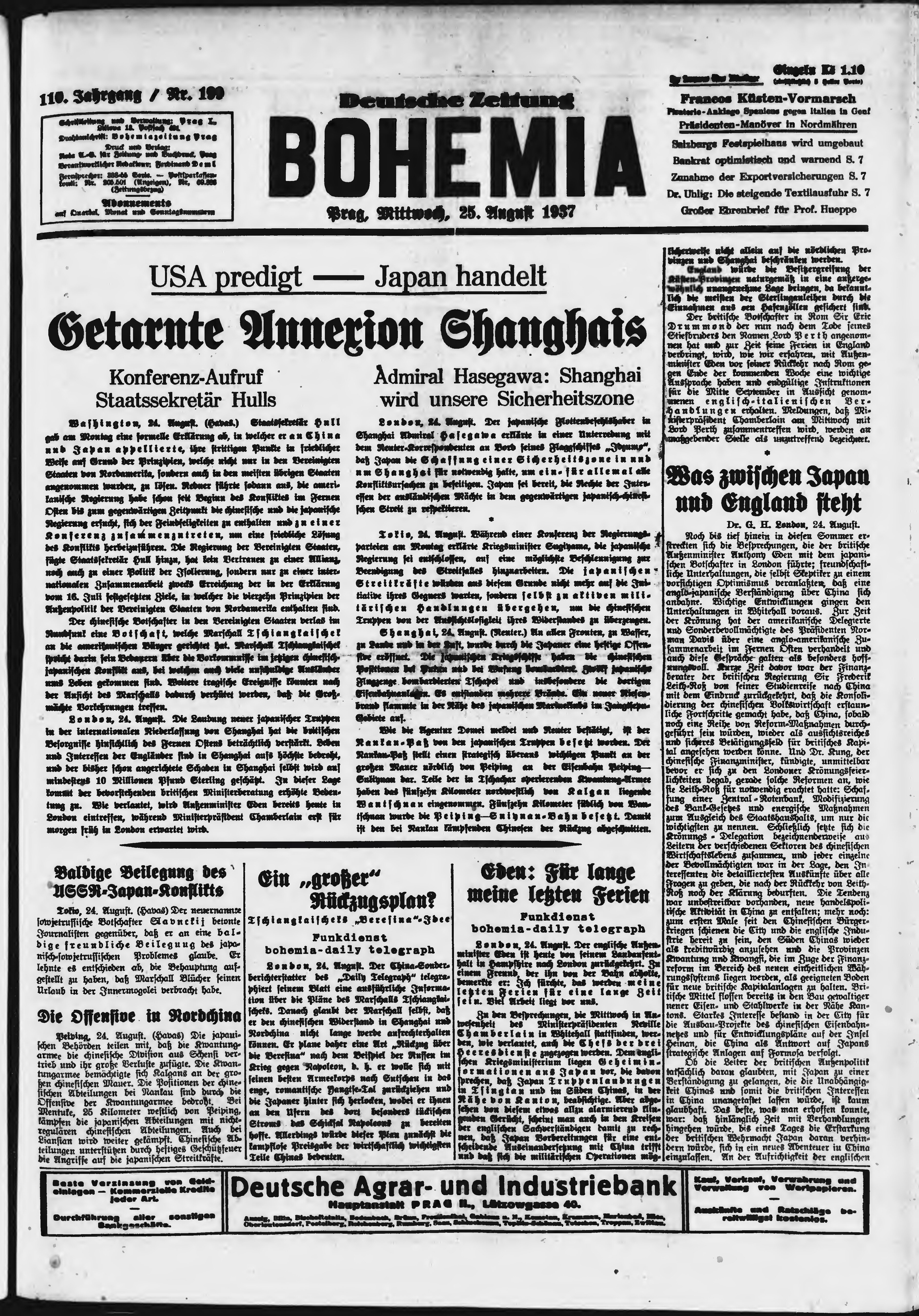 * Datum vydání výtisku: 25.8.1937 Číslo výtisku: 199 Poznámky k výtisku: ranní vydání;