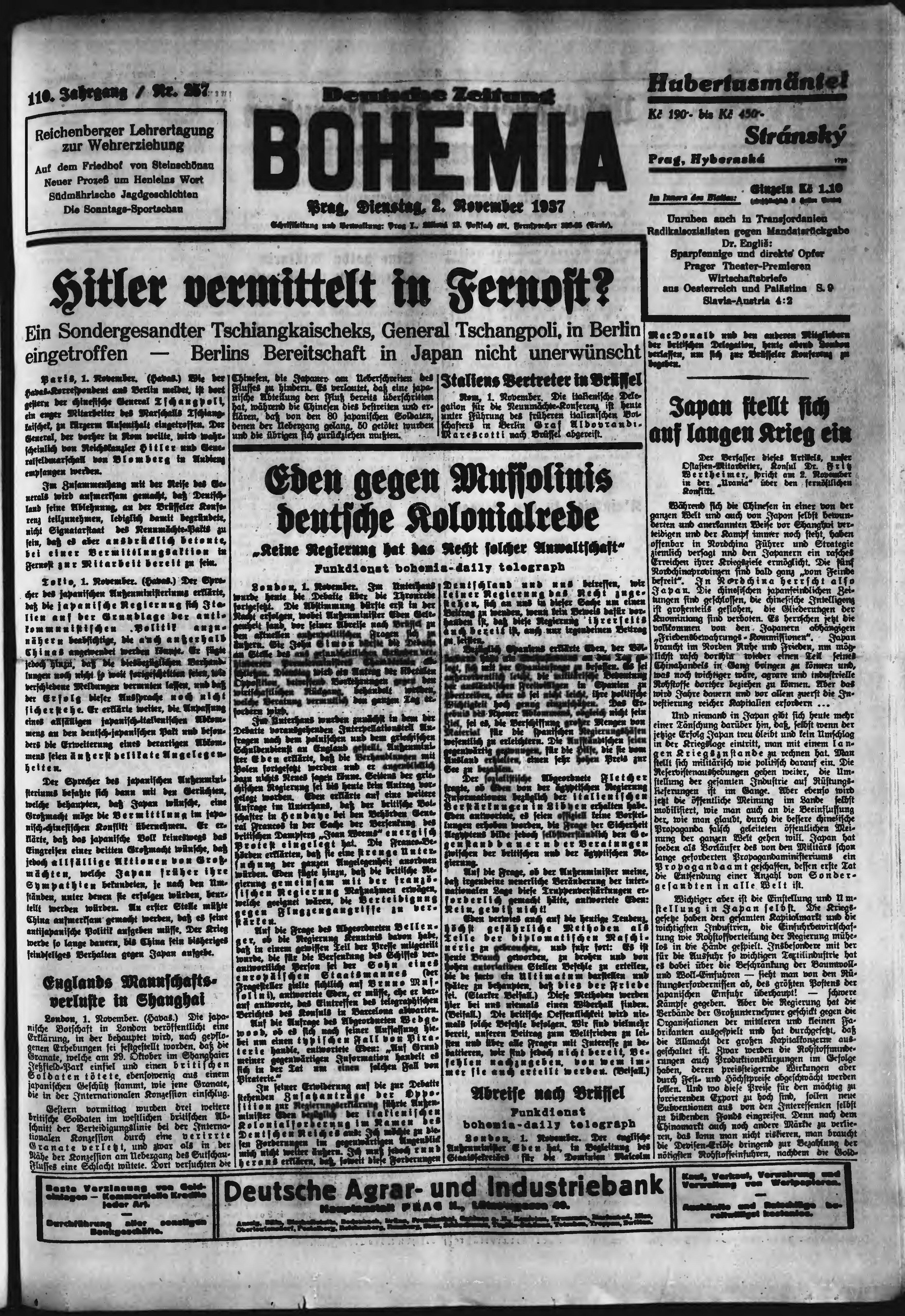 * Datum vydání výtisku: 2.11.1937 Číslo výtisku: 257 Poznámky k výtisku: ranní vydání;