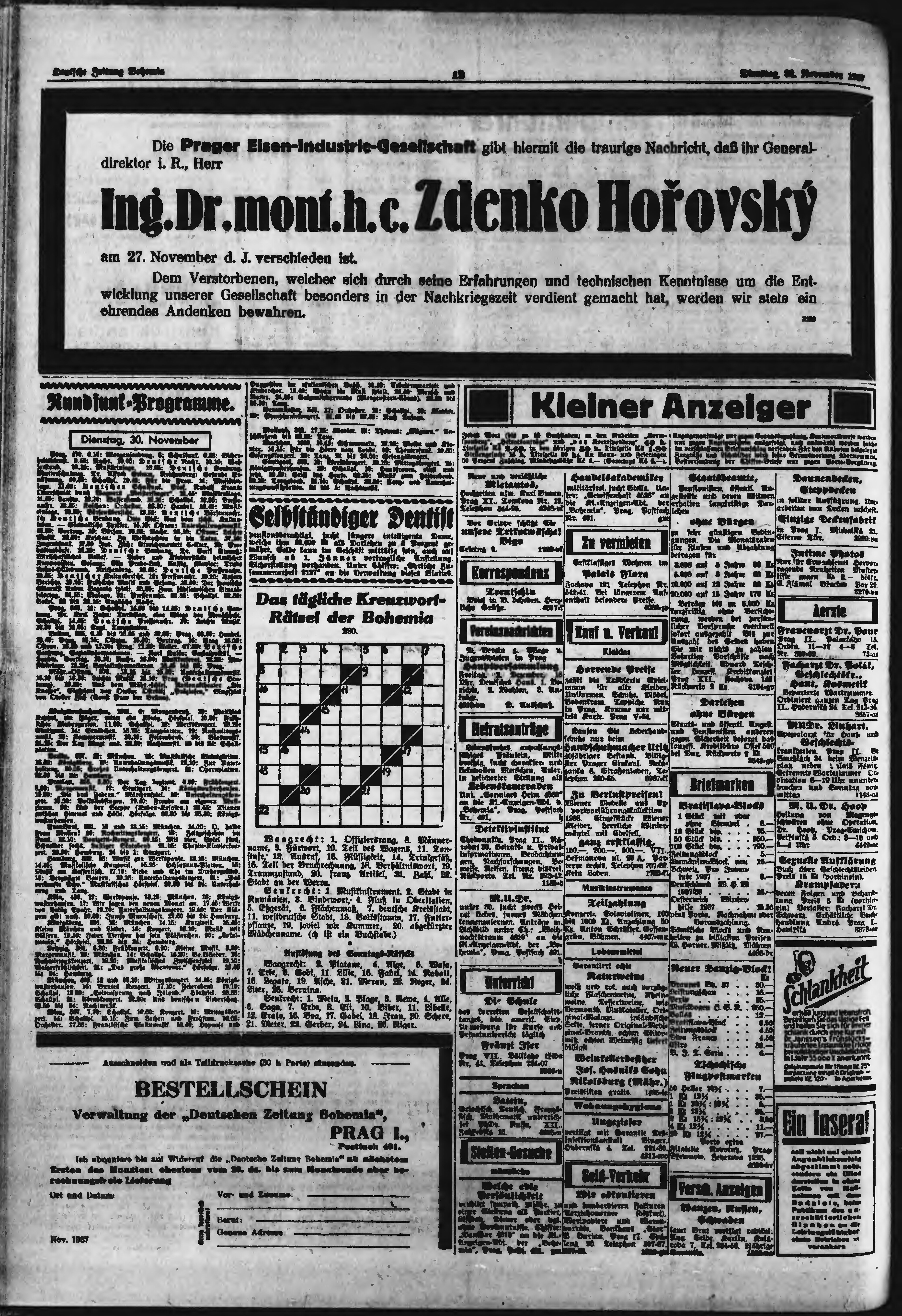 * Datum vydání výtisku: 30.11.1937 Číslo výtisku: 281 Poznámky k výtisku: ranní vydání;