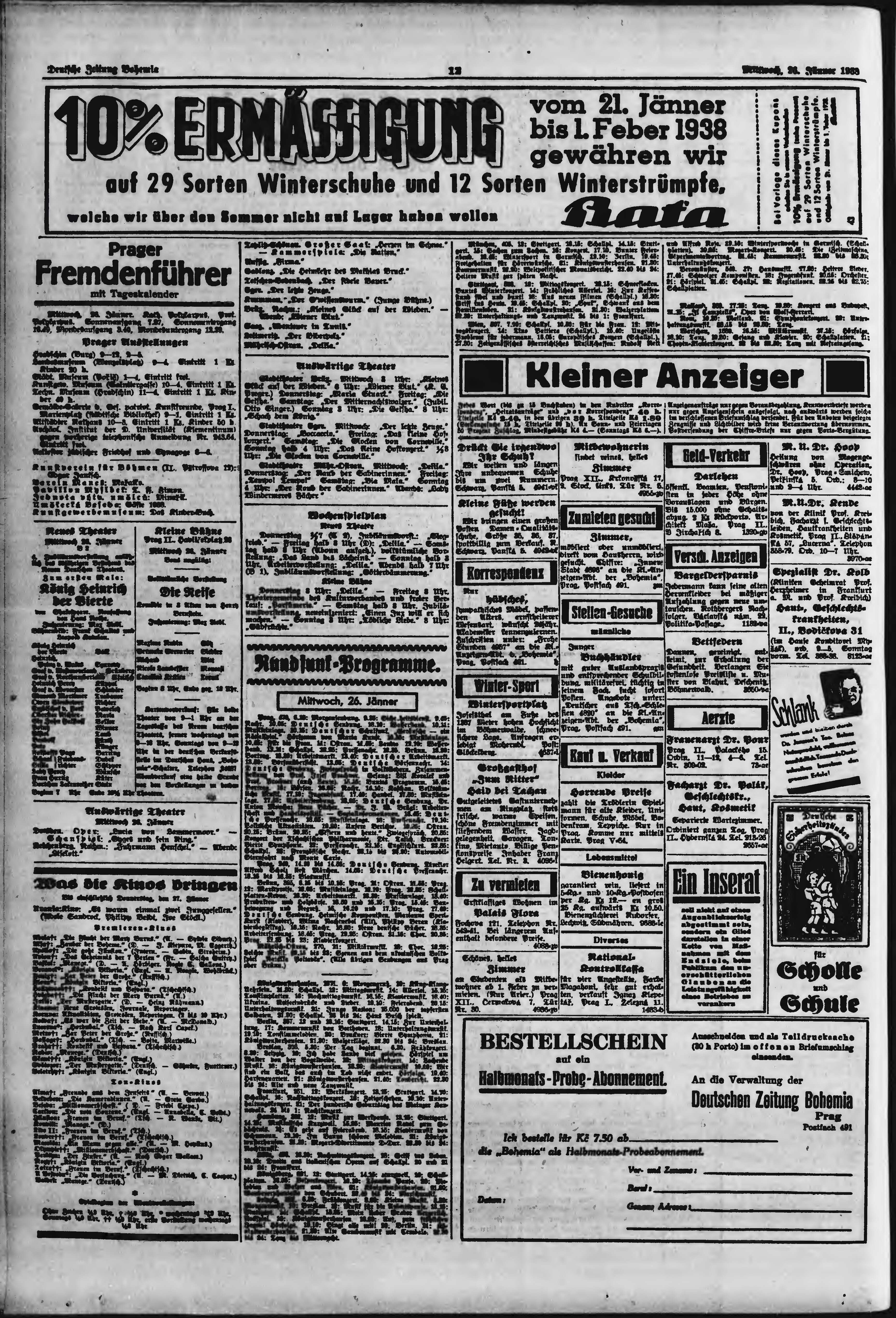 * Datum vydání výtisku: 26.1.1938 Číslo výtisku: 21 Poznámky k výtisku: ranní vydání;