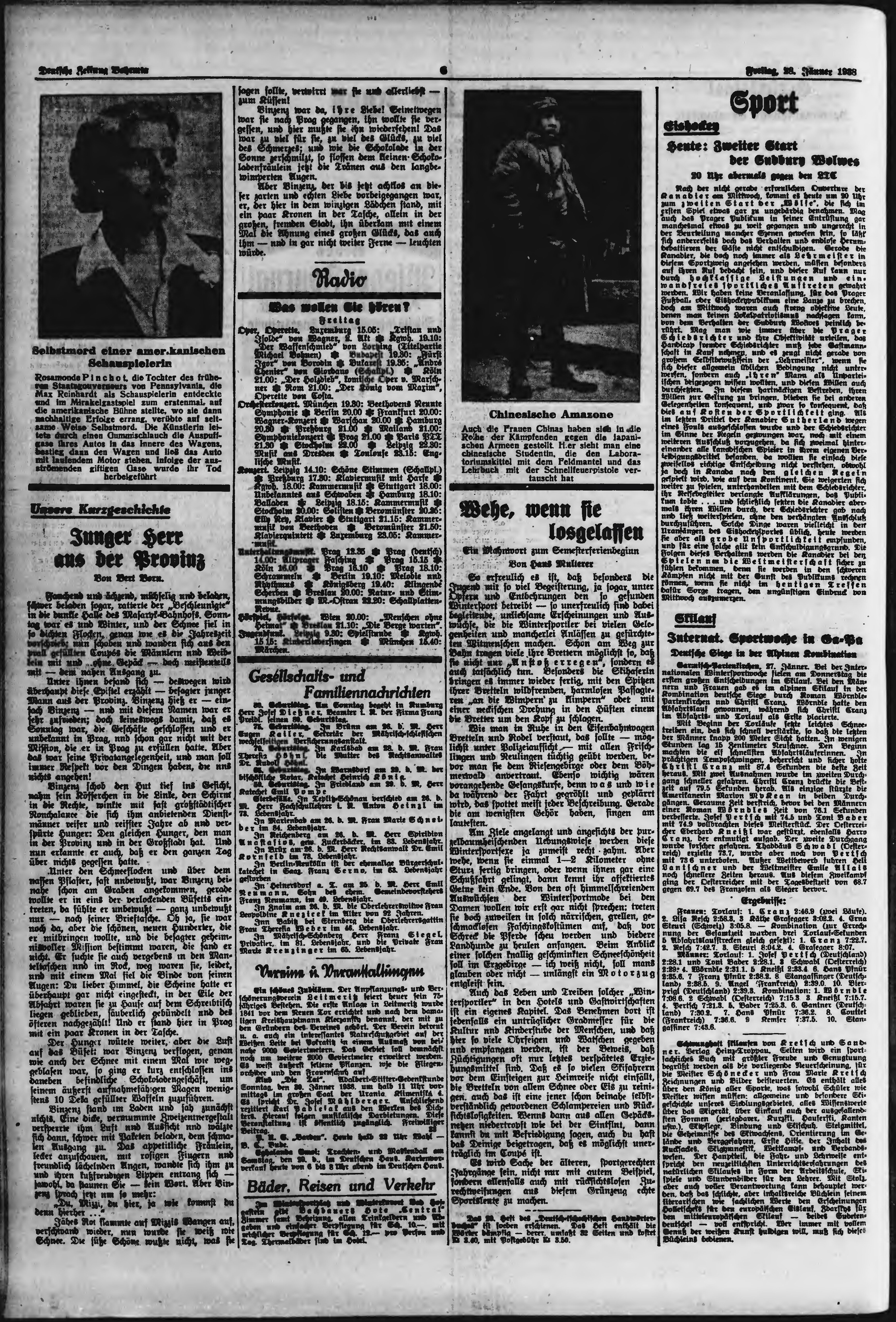 * Datum vydání výtisku: 28.1.1938 Číslo výtisku: 23 Poznámky k výtisku: ranní vydání;