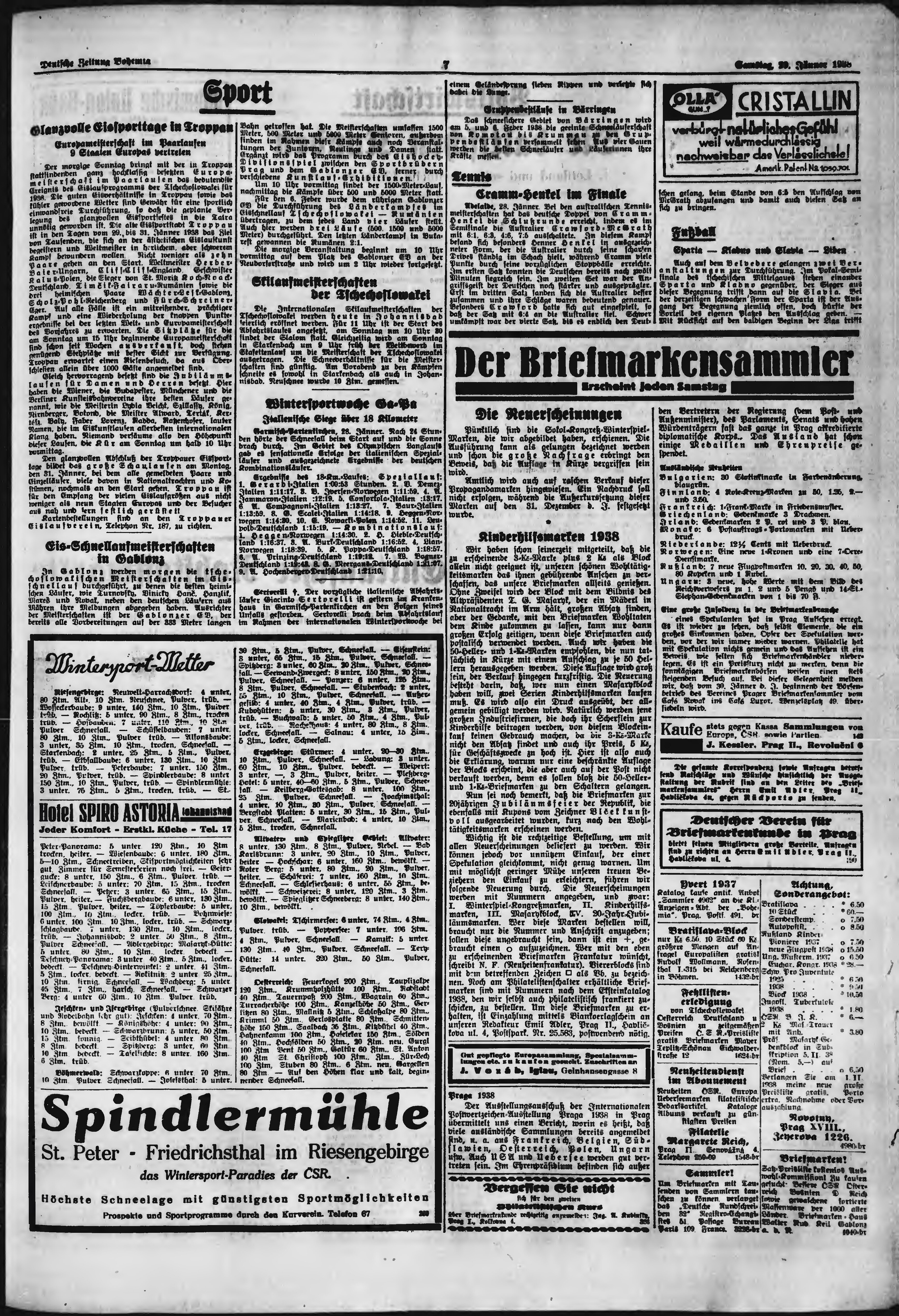 * Datum vydání výtisku: 29.1.1938 Číslo výtisku: 24 Poznámky k výtisku: ranní vydání;