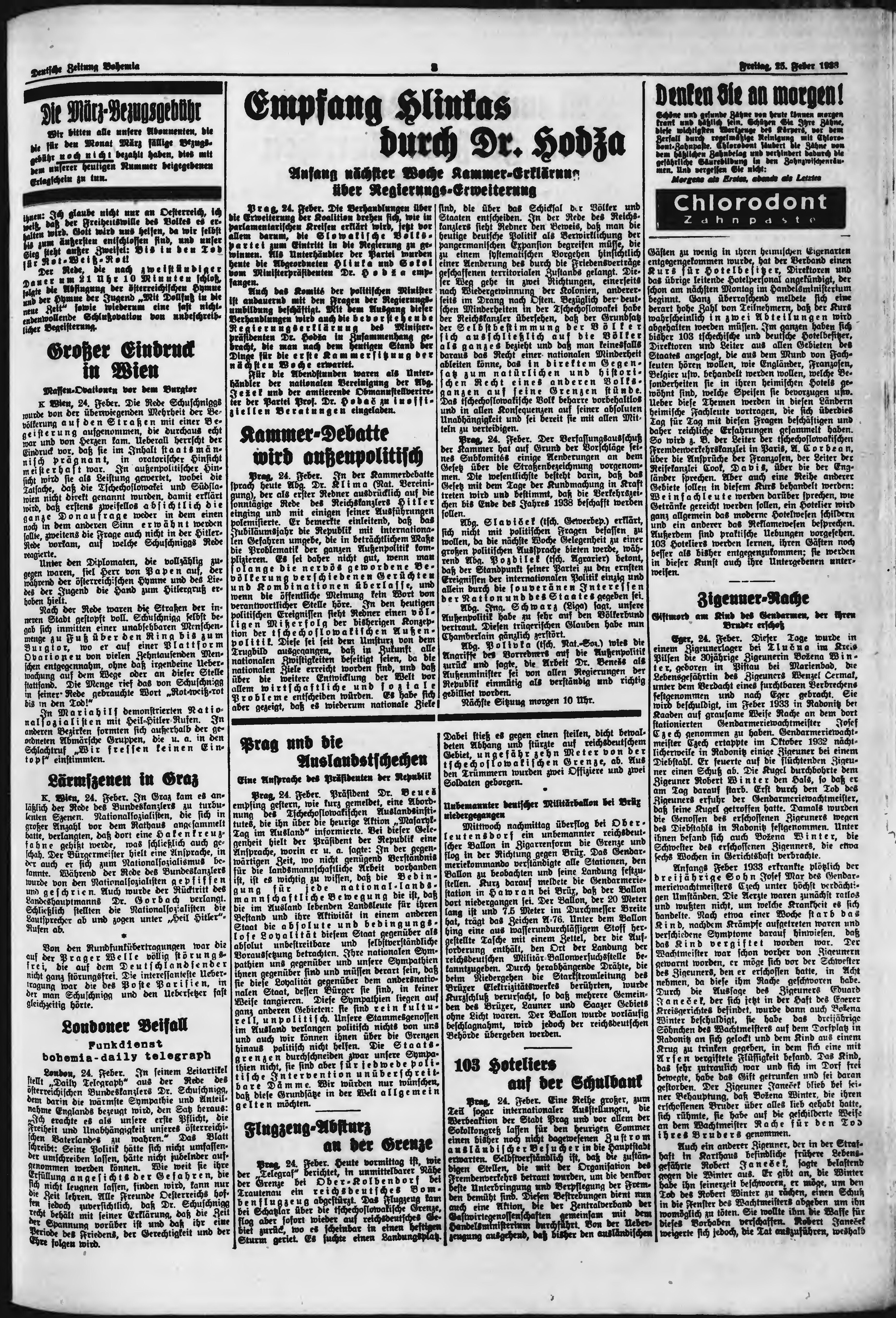 * Datum vydání výtisku: 25.2.1938 Číslo výtisku: 47 Poznámky k výtisku: ranní vydání;