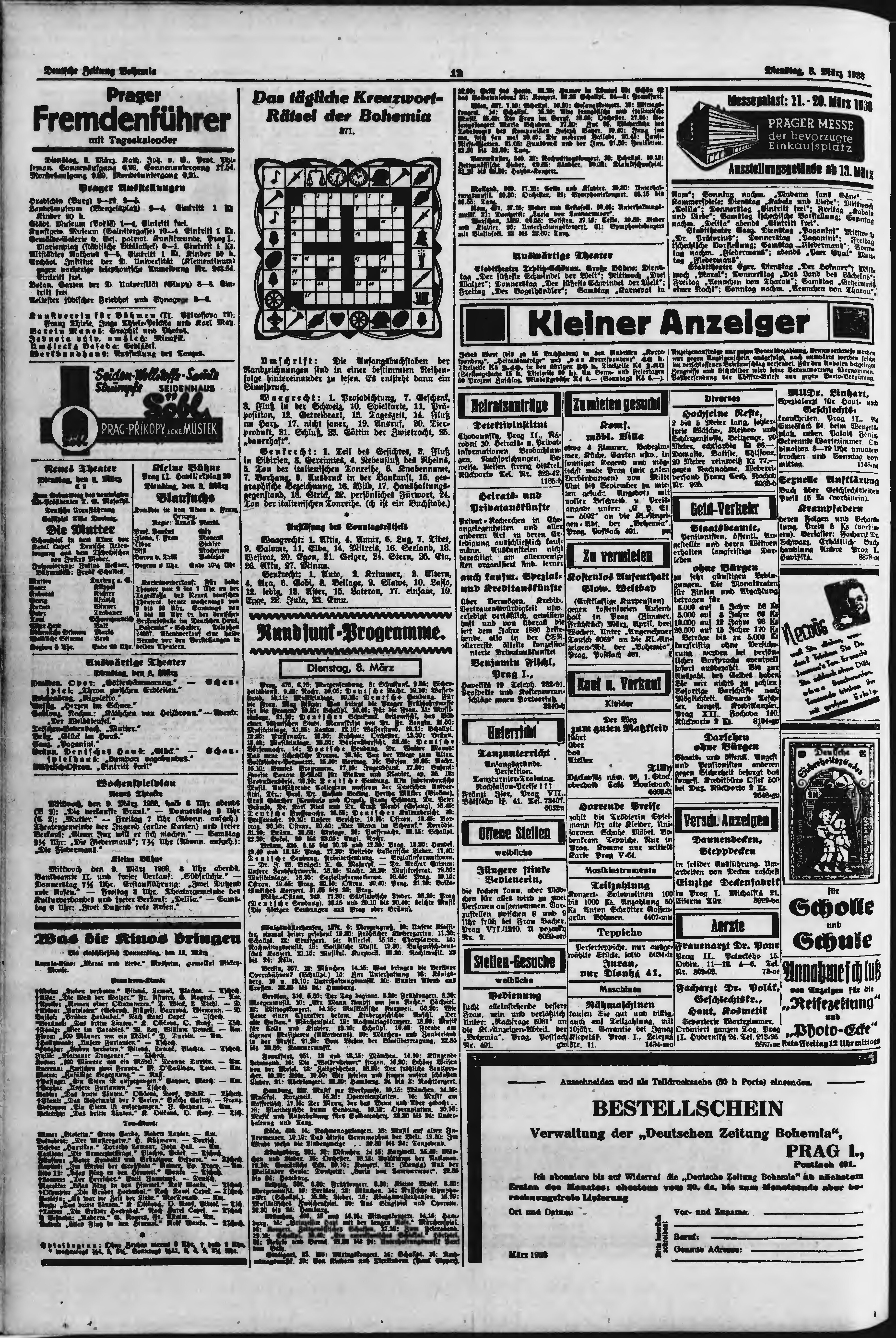 * Datum vydání výtisku: 8.3.1938 Číslo výtisku: 56 Poznámky k výtisku: ranní vydání;