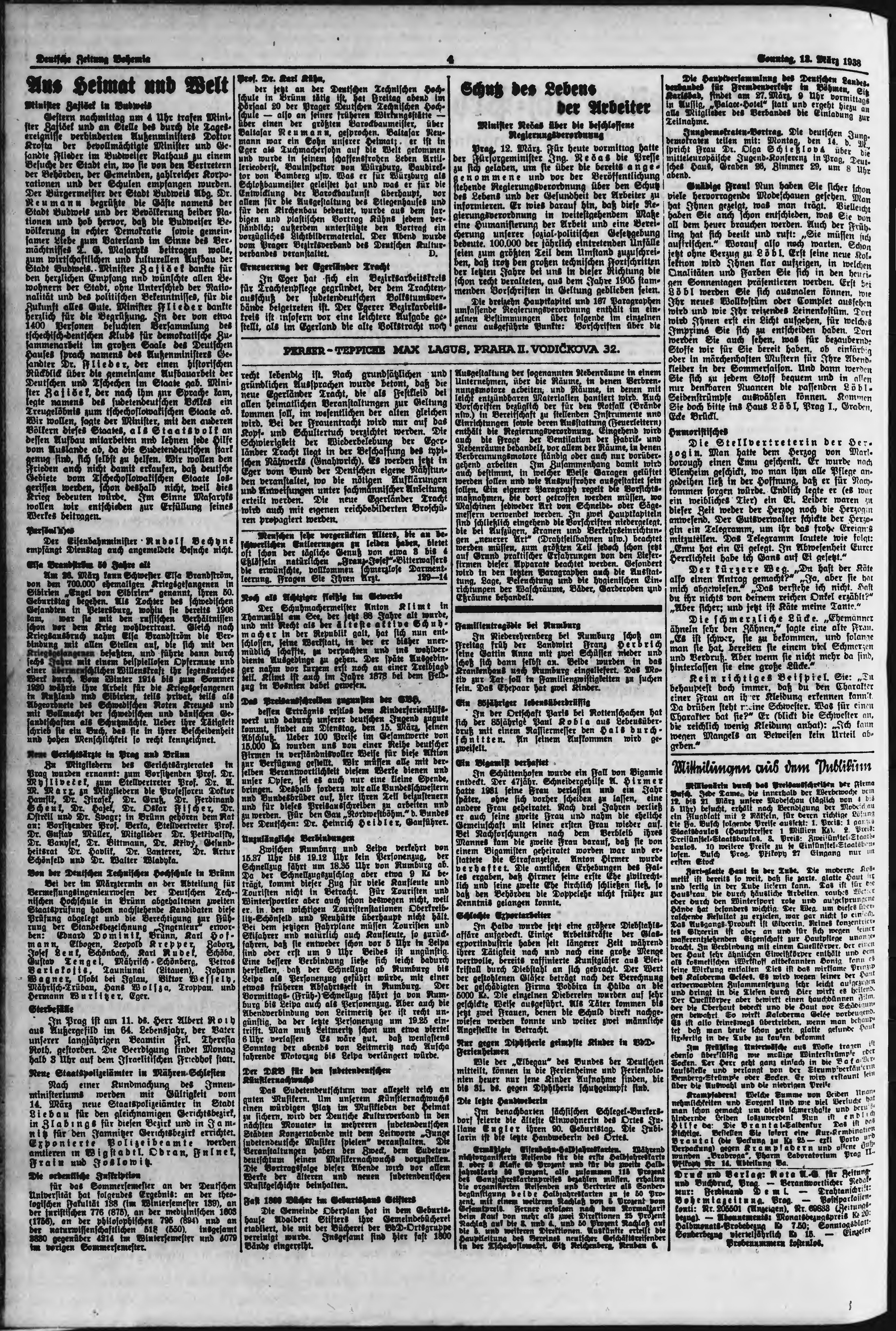 * Datum vydání výtisku: 13.3.1938 Číslo výtisku: 61 Poznámky k výtisku: ranní vydání;
