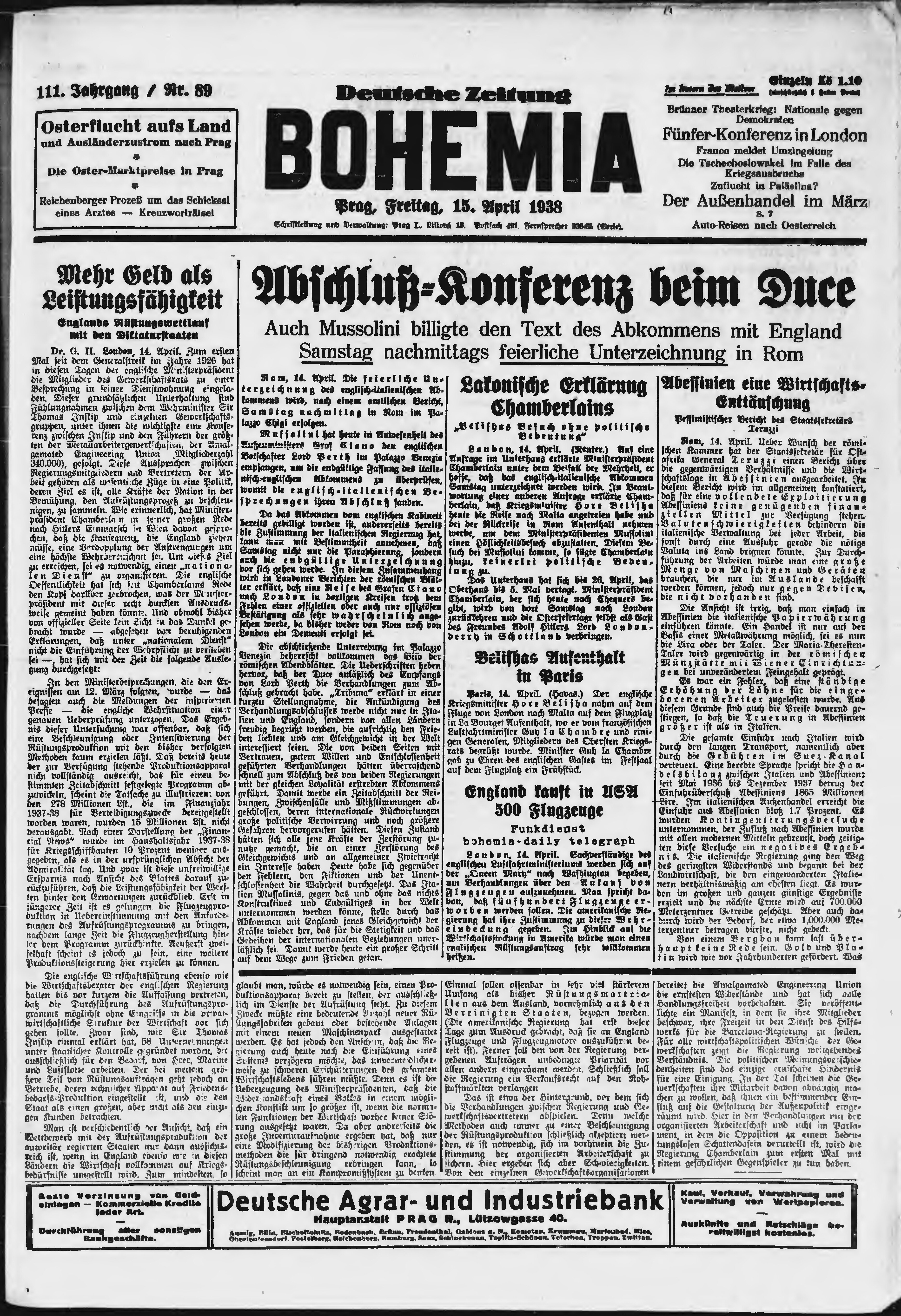 * Datum vydání výtisku: 15.4.1938 Číslo výtisku: 89 Poznámky k výtisku: ranní vydání;