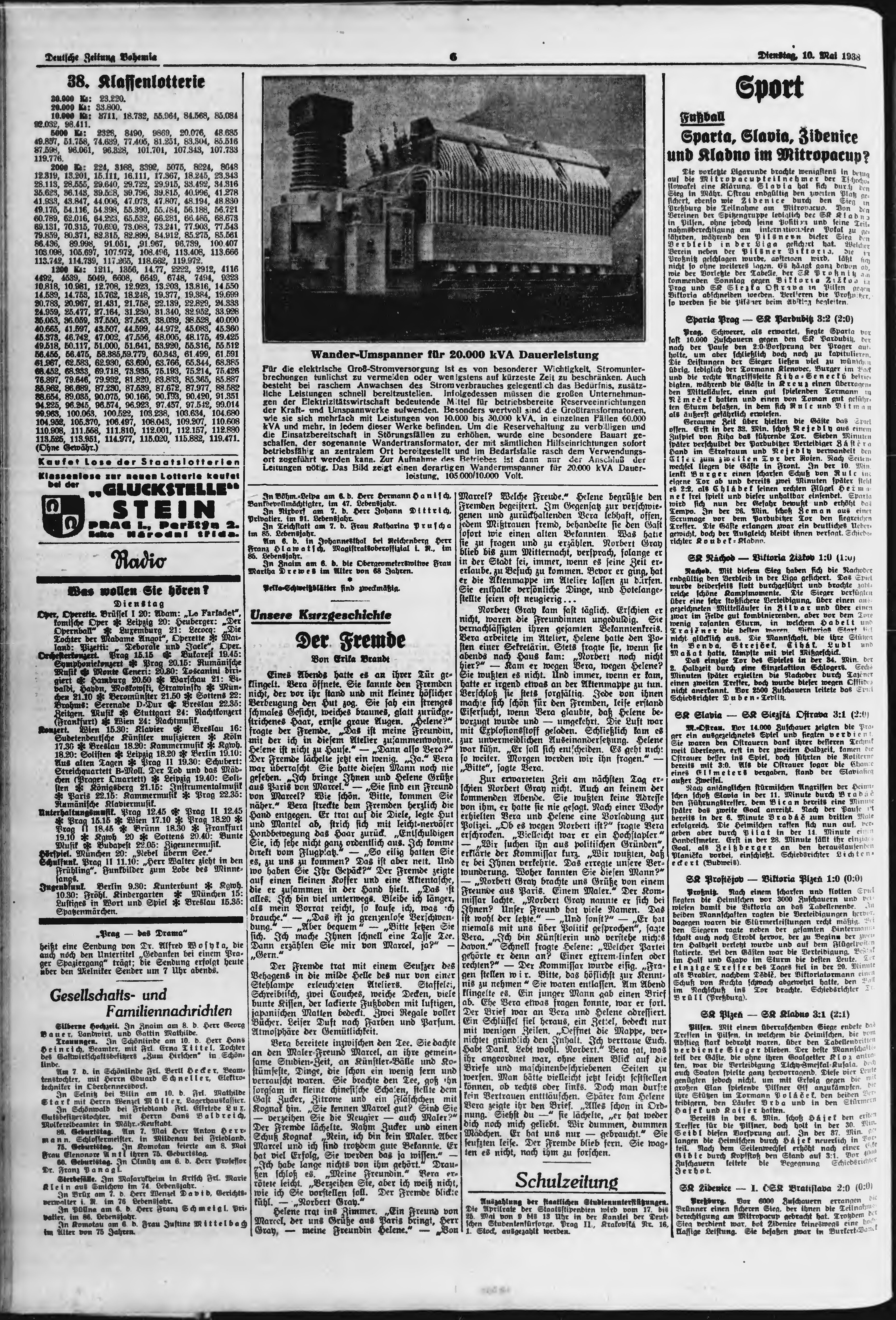 * Datum vydání výtisku: 10.5.1938 Číslo výtisku: 109 Poznámky k výtisku: ranní vydání;