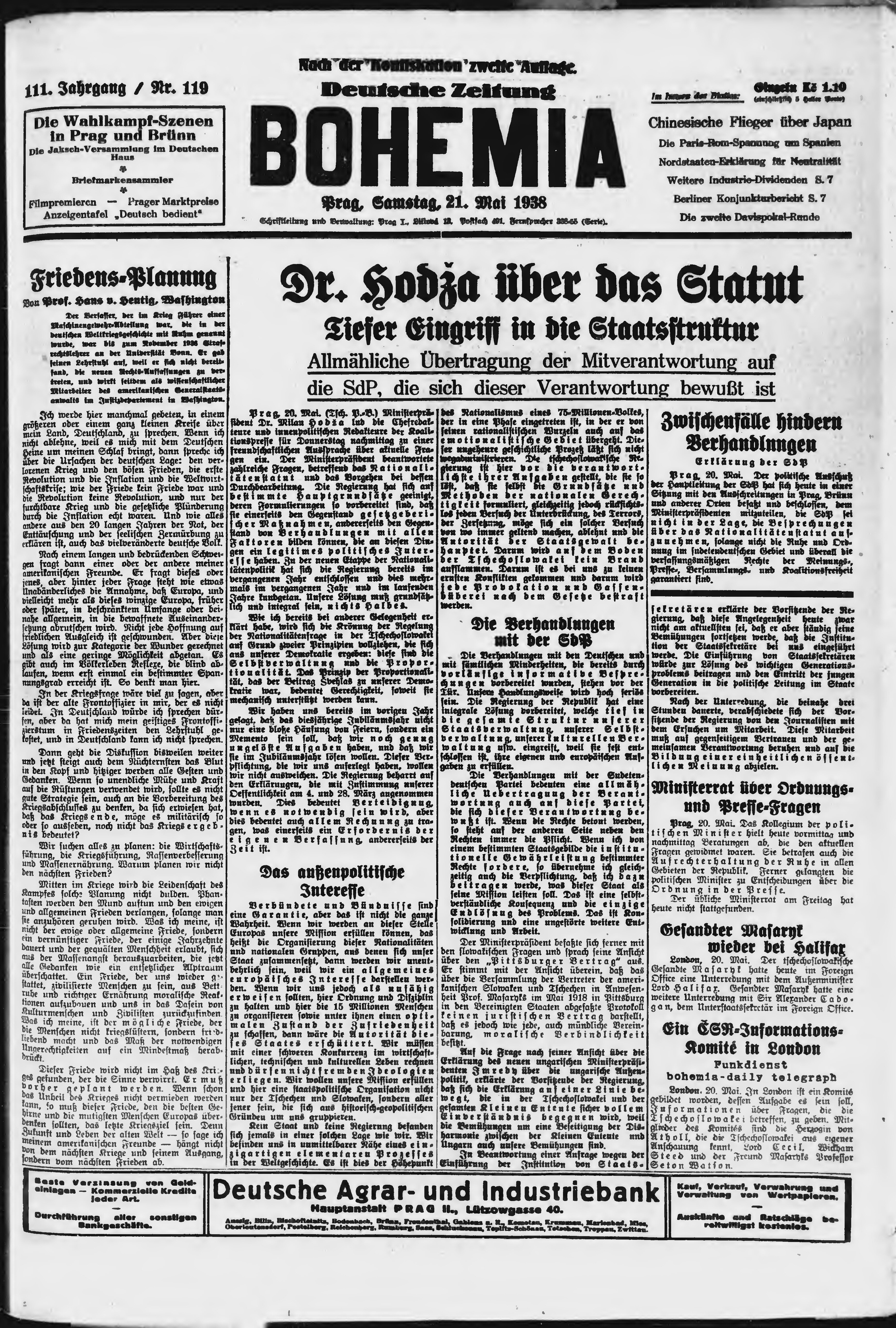* Datum vydání výtisku: 21.5.1938 Číslo výtisku: 119 Poznámky k výtisku: ranní vydání;