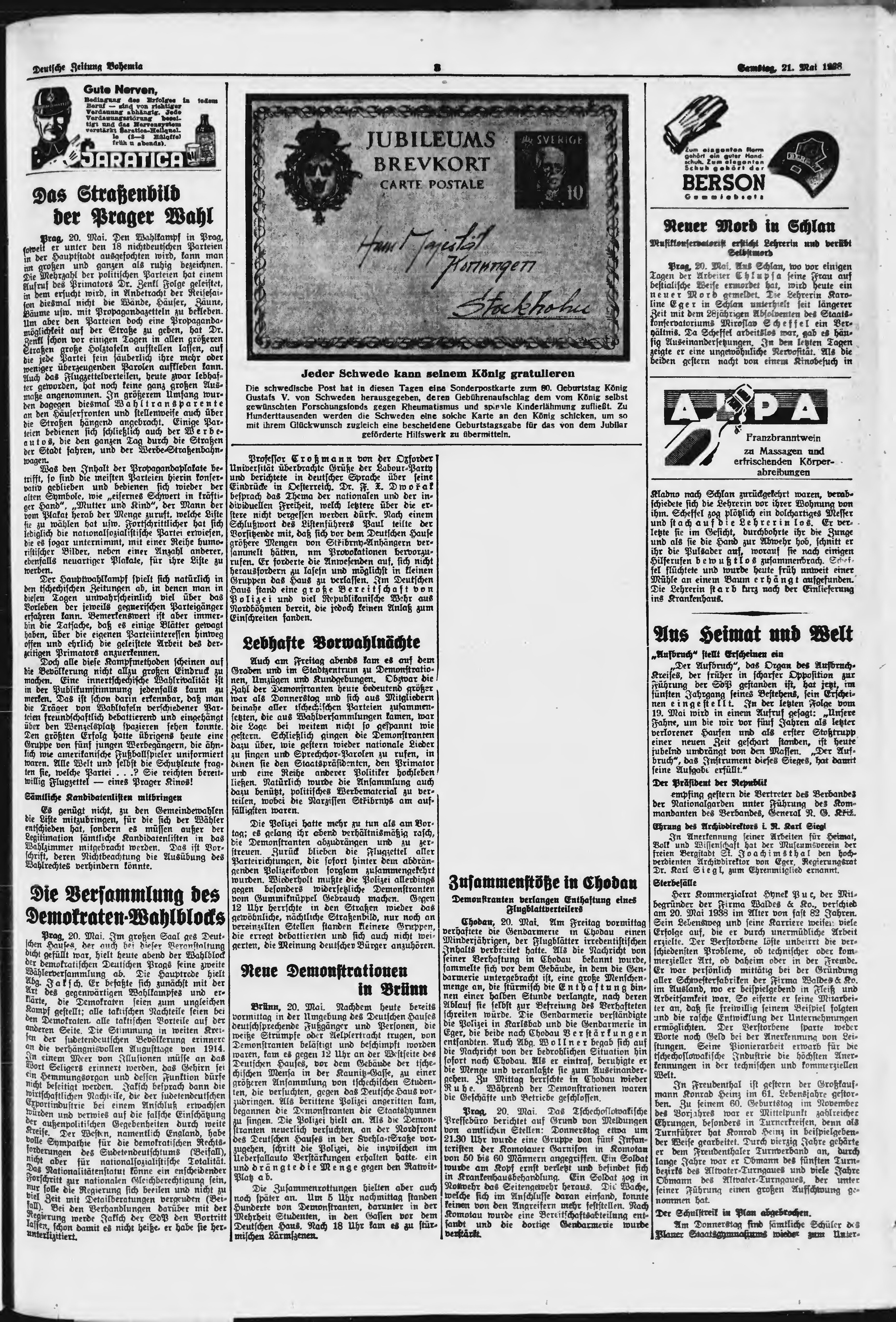 * Datum vydání výtisku: 21.5.1938 Číslo výtisku: 119 Poznámky k výtisku: ranní vydání;