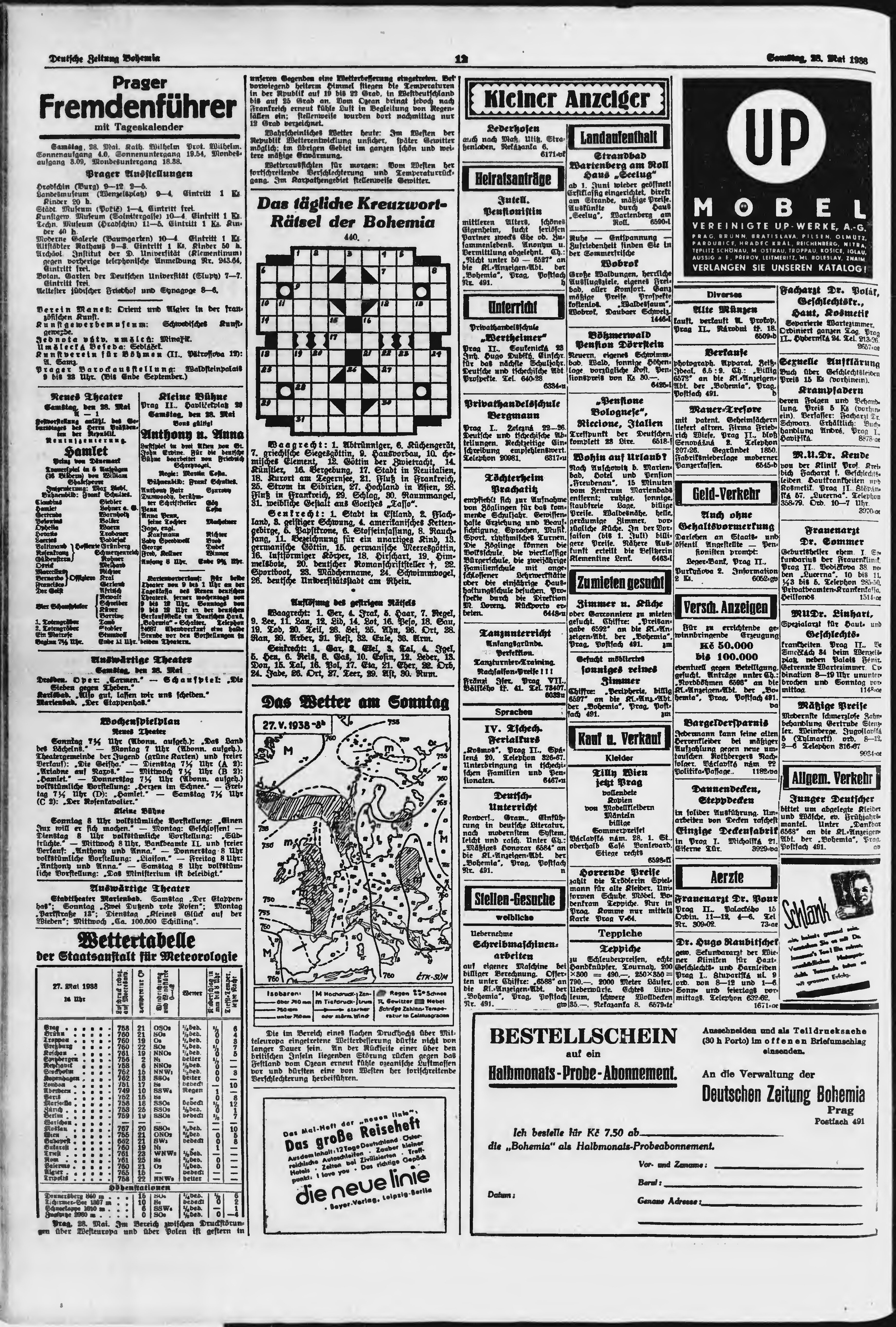 * Datum vydání výtisku: 28.5.1938 Číslo výtisku: 125 Poznámky k výtisku: ranní vydání;