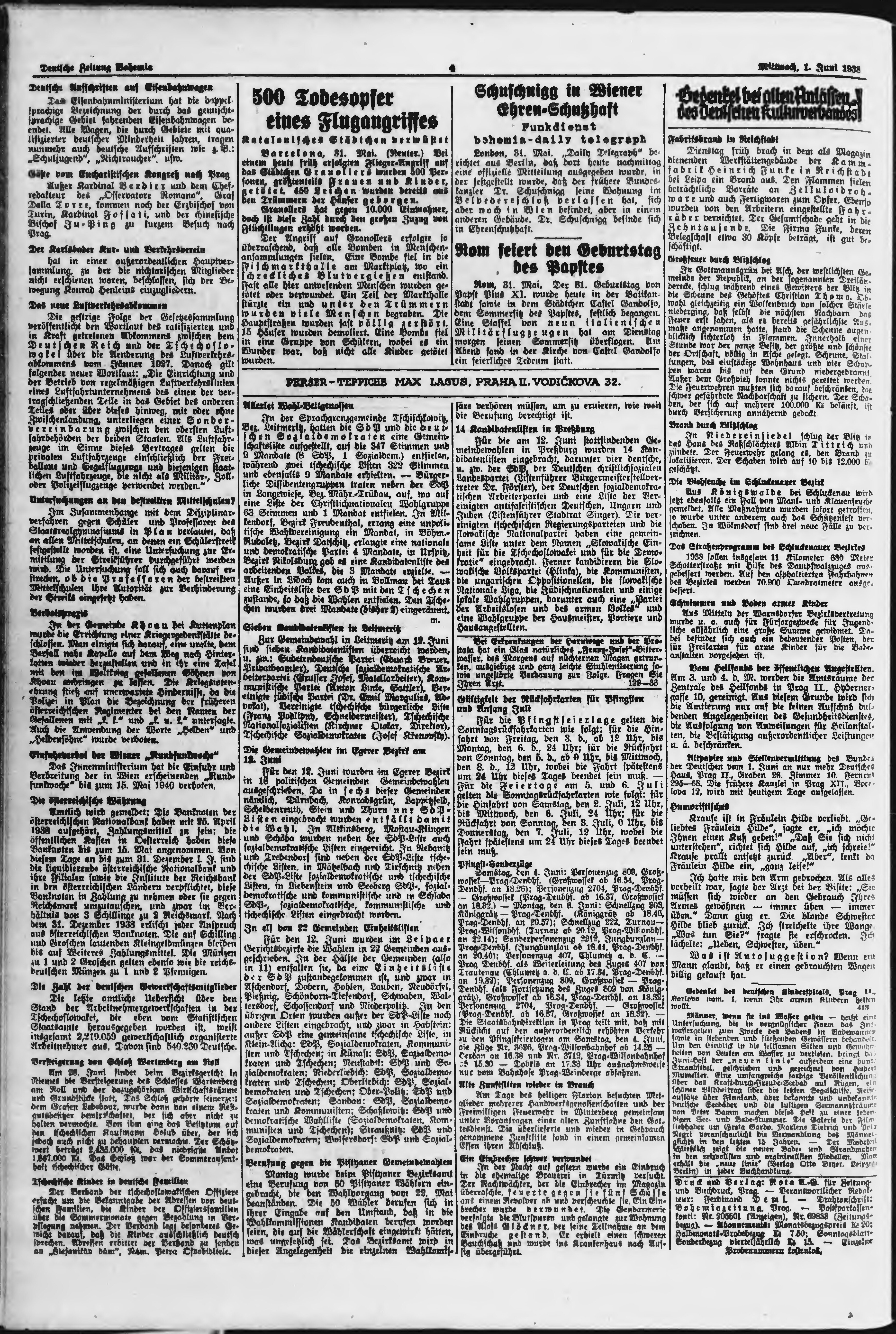 * Datum vydání výtisku: 1.6.1938 Číslo výtisku: 128 Poznámky k výtisku: ranní vydání;