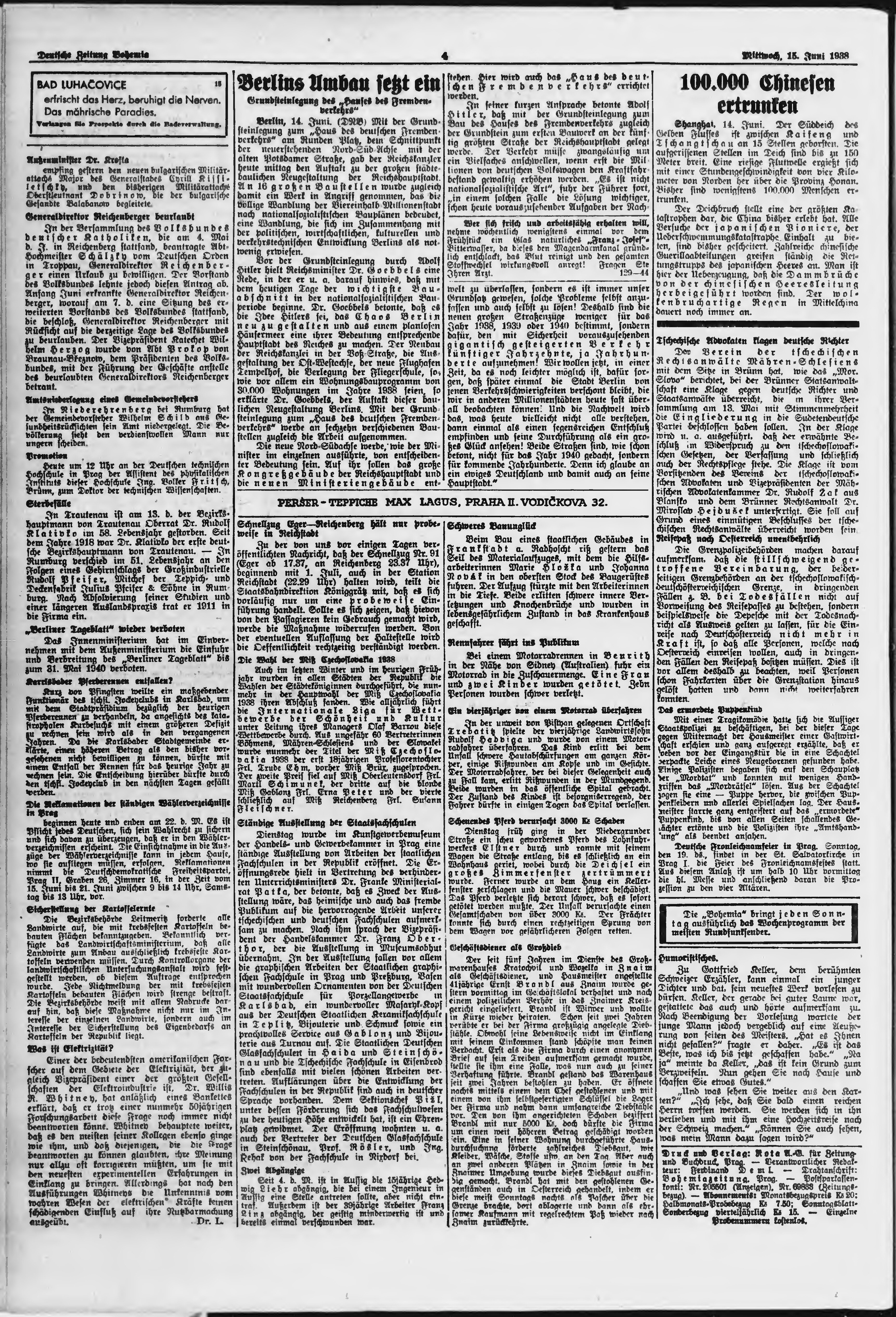 * Datum vydání výtisku: 15.6.1938 Číslo výtisku: 139 Poznámky k výtisku: ranní vydání;
