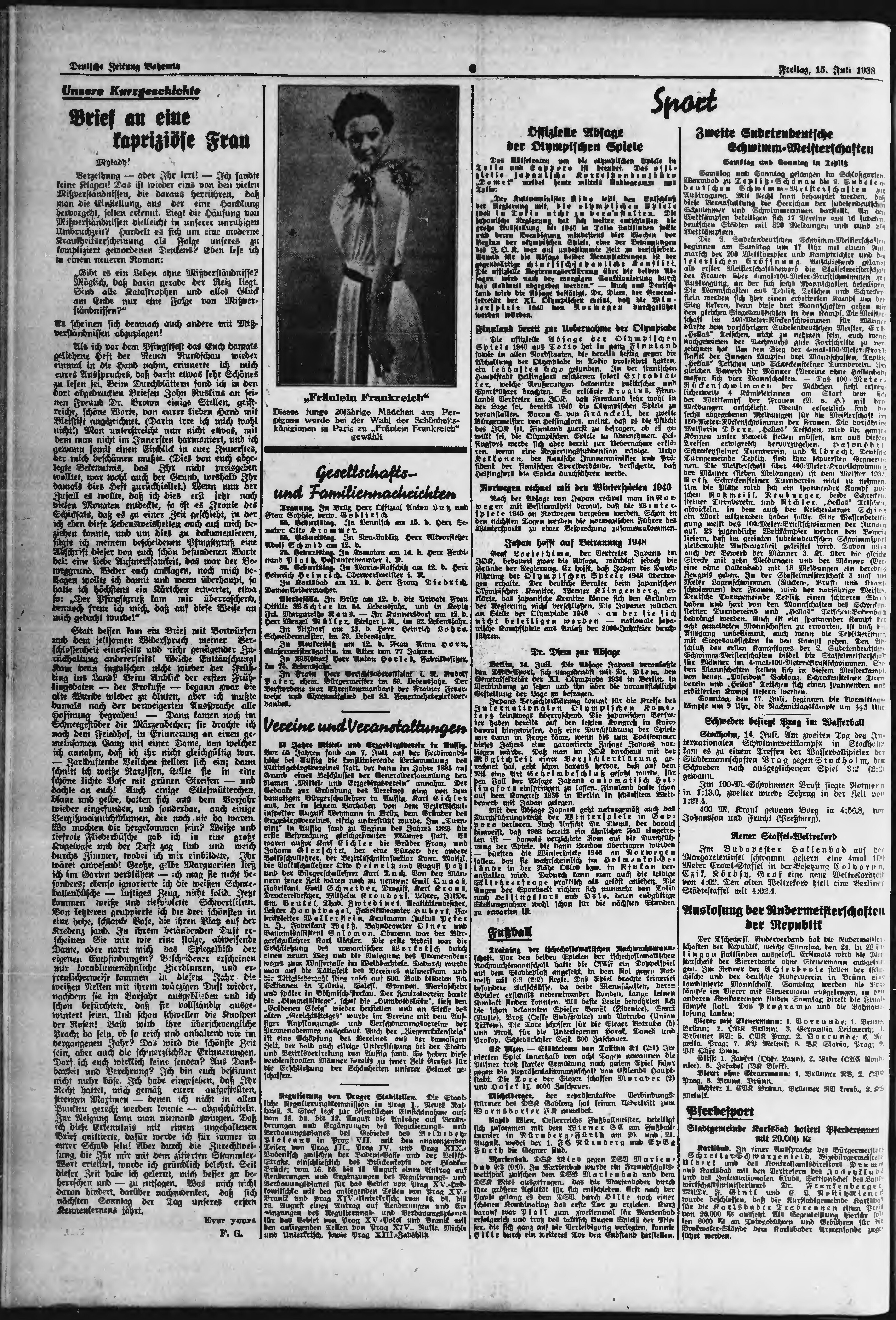 * Datum vydání výtisku: 15.7.1938 Číslo výtisku: 164 Poznámky k výtisku: ranní vydání;