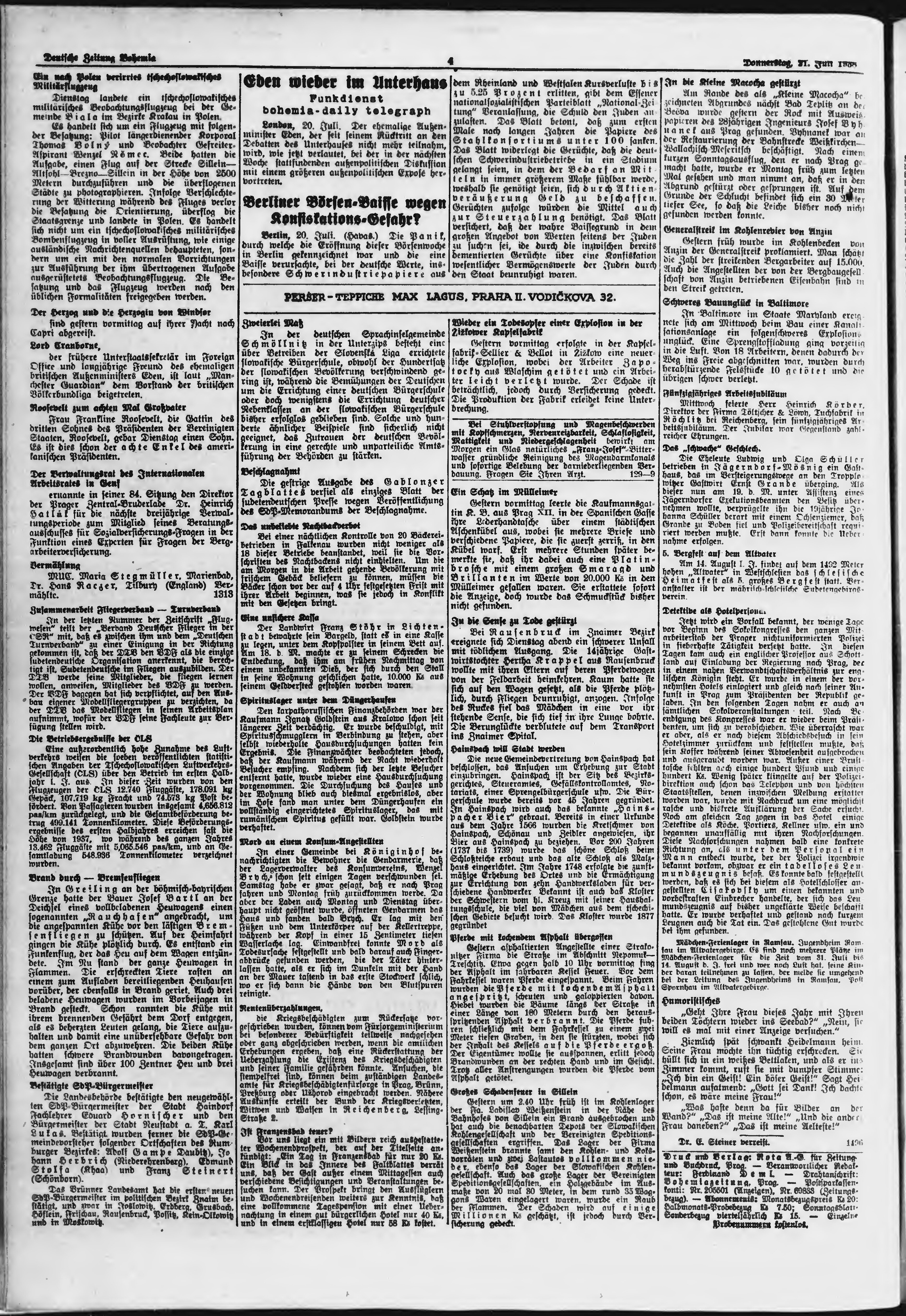 * Datum vydání výtisku: 21.7.1938 Číslo výtisku: 169 Poznámky k výtisku: ranní vydání;