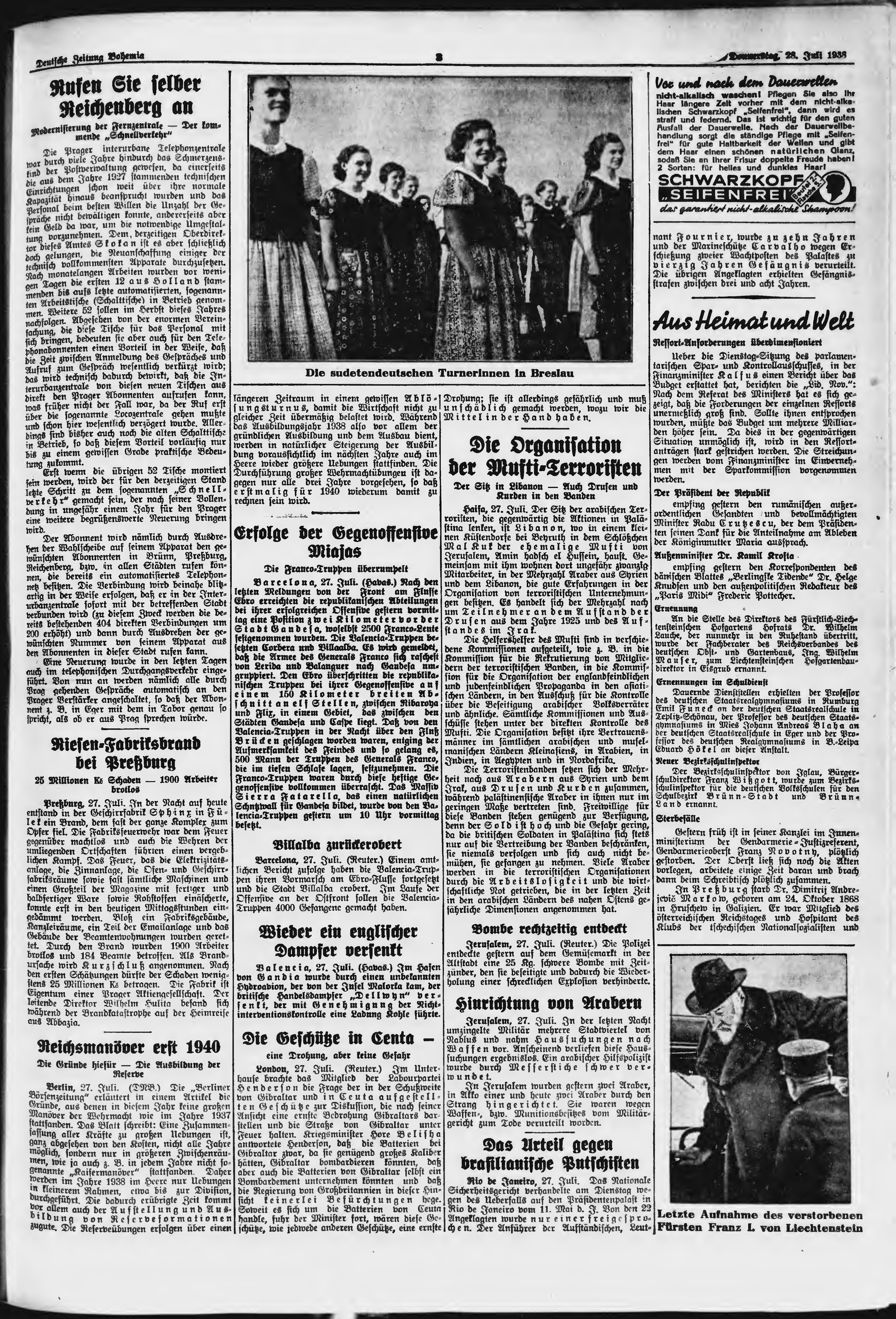 * Datum vydání výtisku: 28.7.1938 Číslo výtisku: 175 Poznámky k výtisku: ranní vydání;