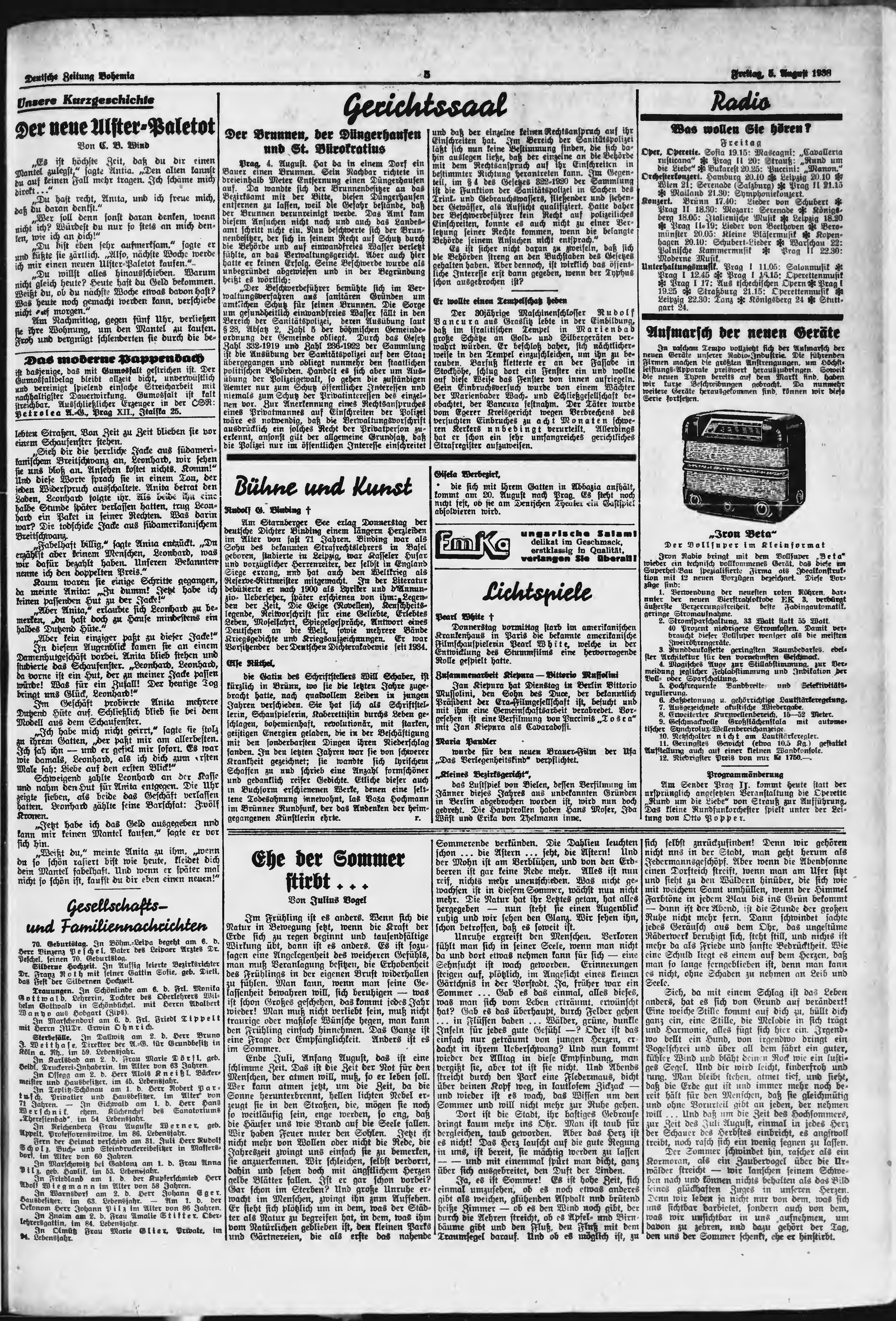 * Datum vydání výtisku: 5.8.1938 Číslo výtisku: 182 Poznámky k výtisku: ranní vydání;