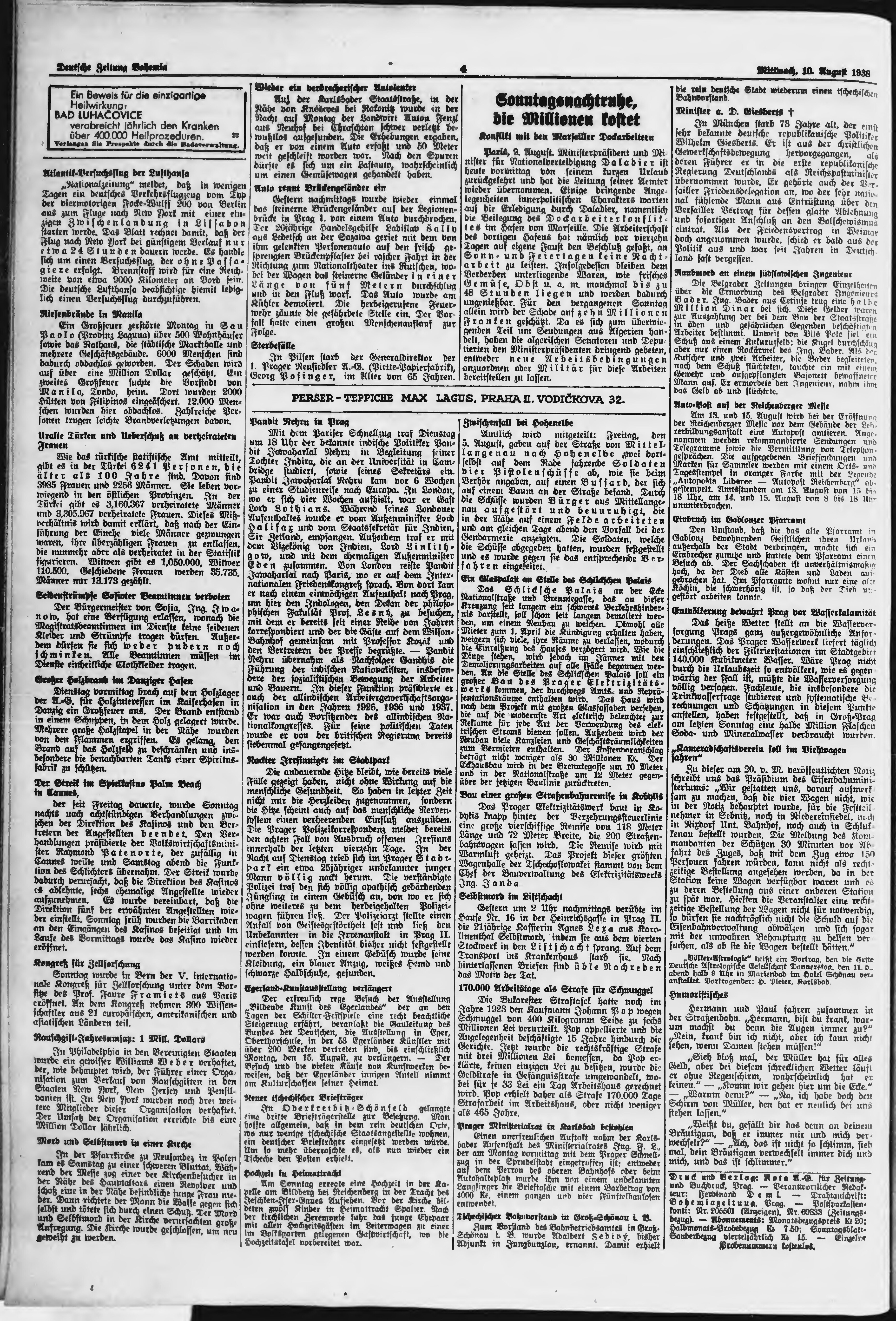 * Datum vydání výtisku: 10.8.1938 Číslo výtisku: 186 Poznámky k výtisku: ranní vydání;