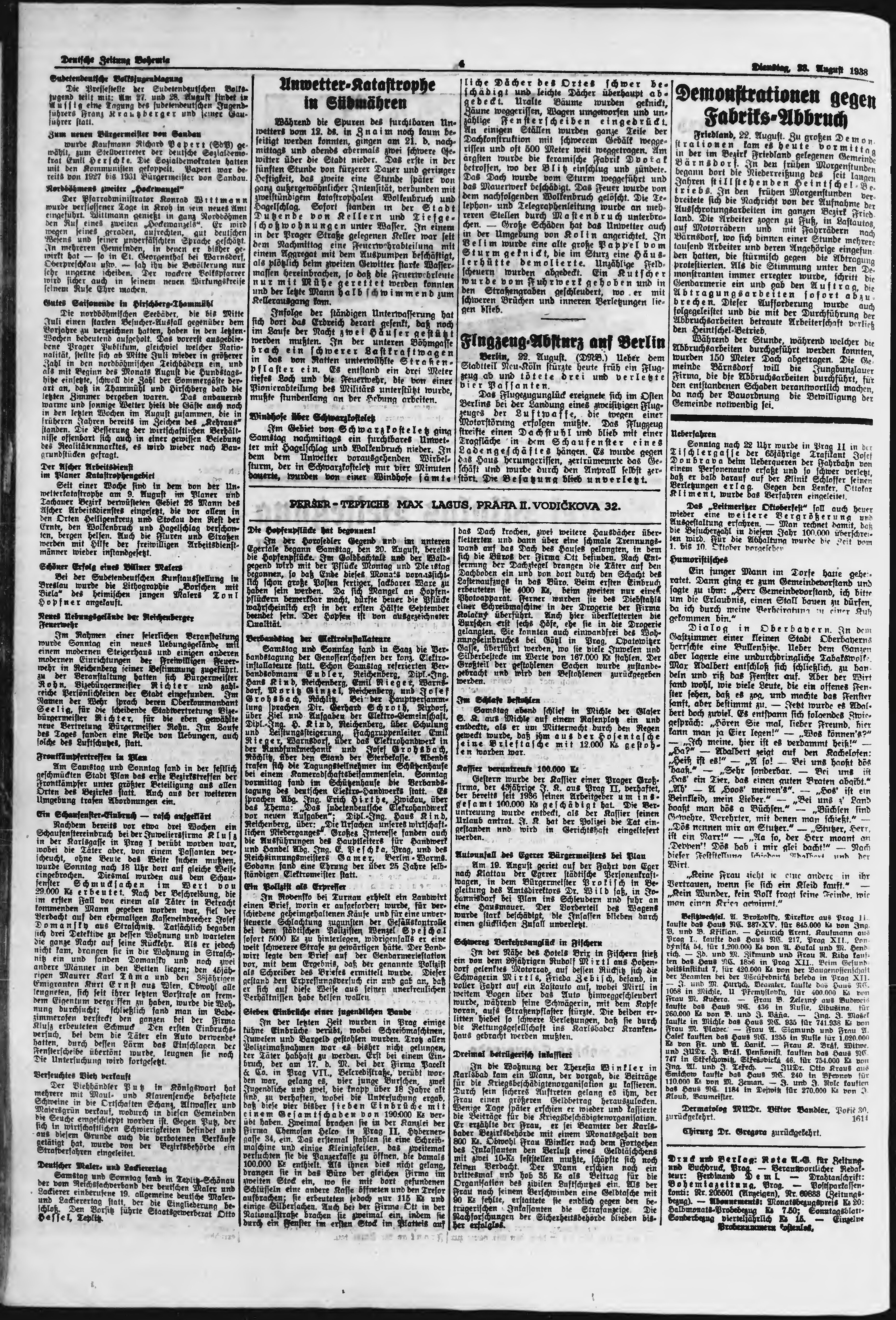 * Datum vydání výtisku: 23.8.1938 Číslo výtisku: 197 Poznámky k výtisku: ranní vydání;