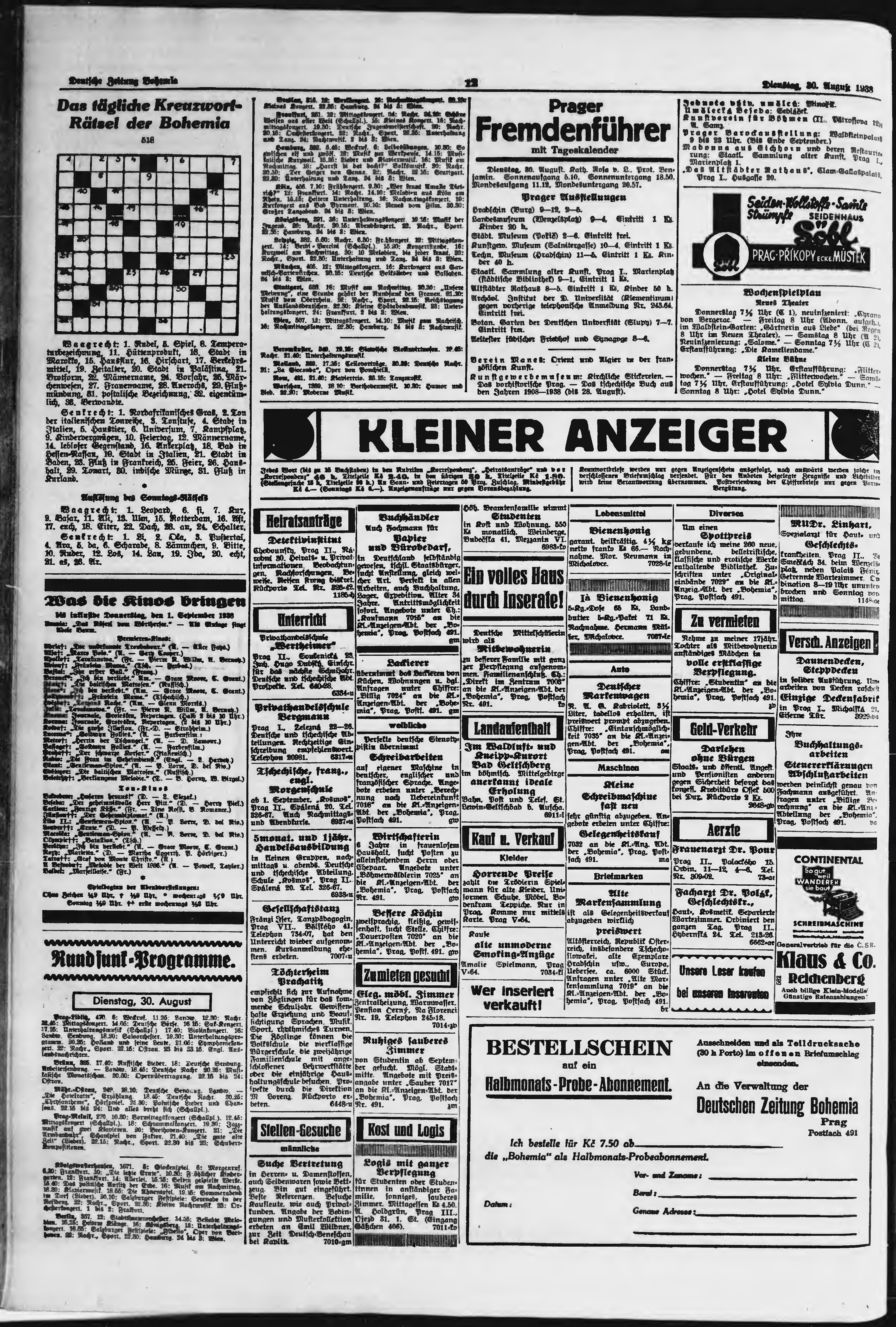 * Datum vydání výtisku: 30.8.1938 Číslo výtisku: 203 Poznámky k výtisku: ranní vydání;