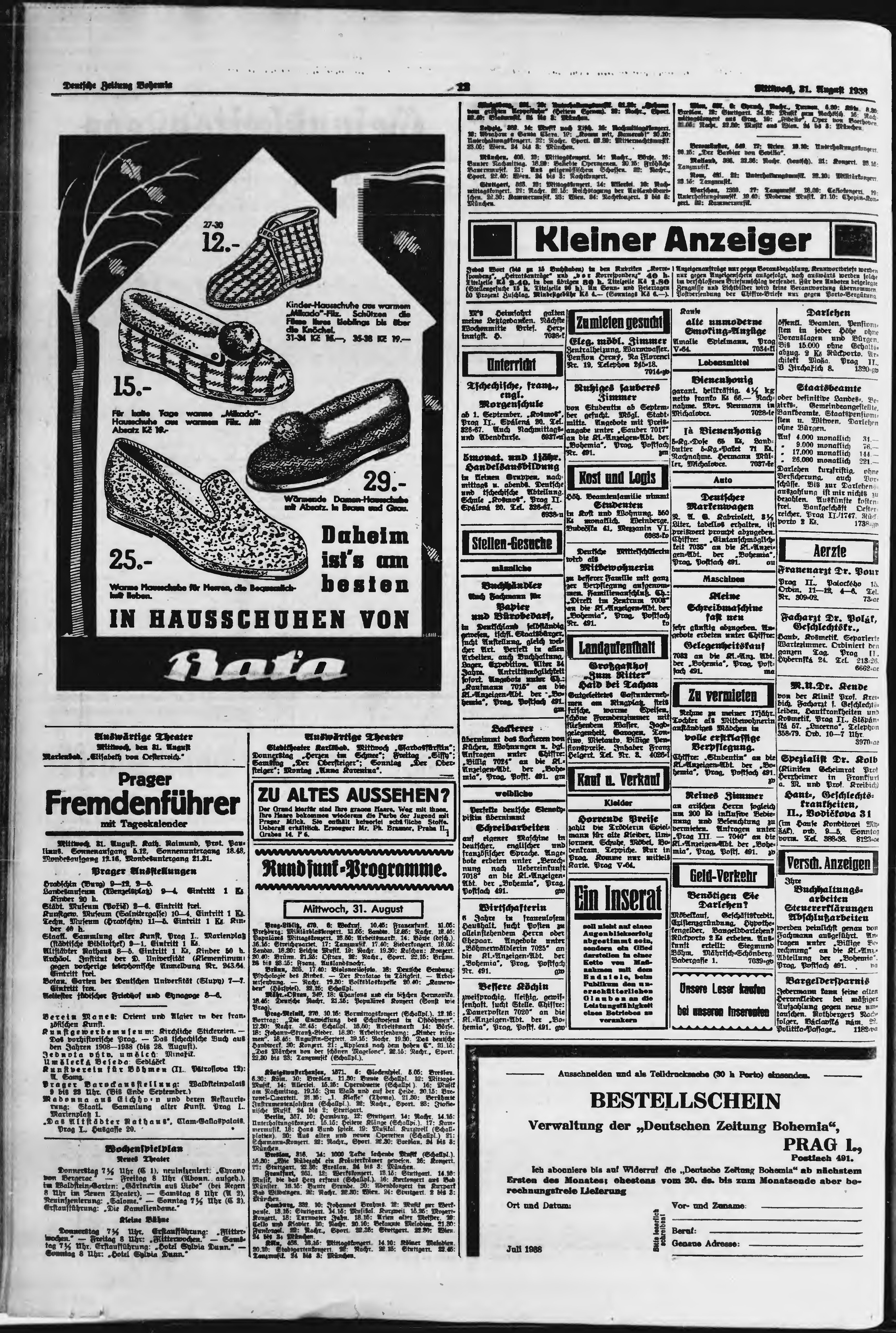 * Datum vydání výtisku: 31.8.1938 Číslo výtisku: 204 Poznámky k výtisku: ranní vydání;