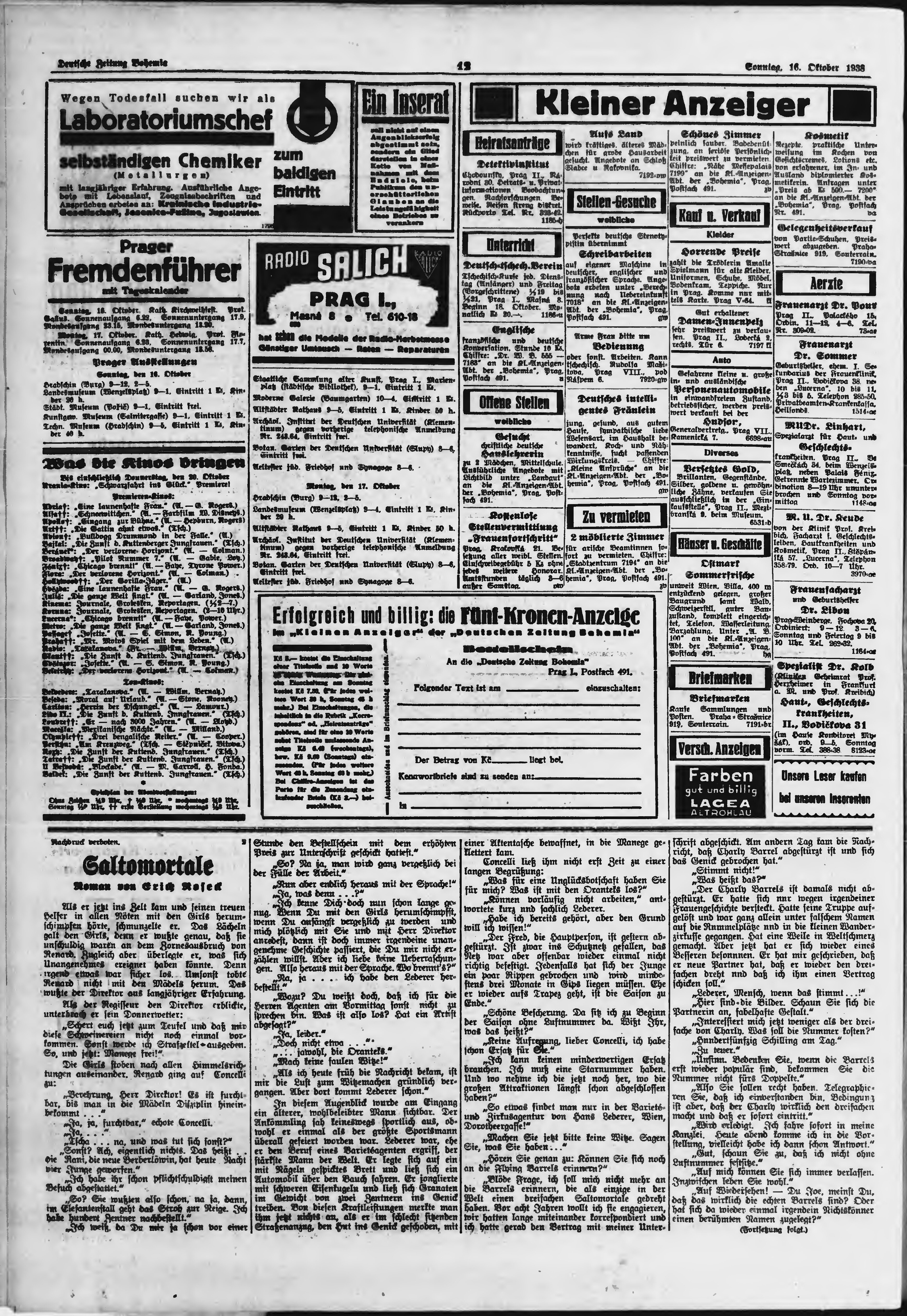 * Datum vydání výtisku: 16.10.1938 Číslo výtisku: 244 Poznámky k výtisku: ranní vydání;