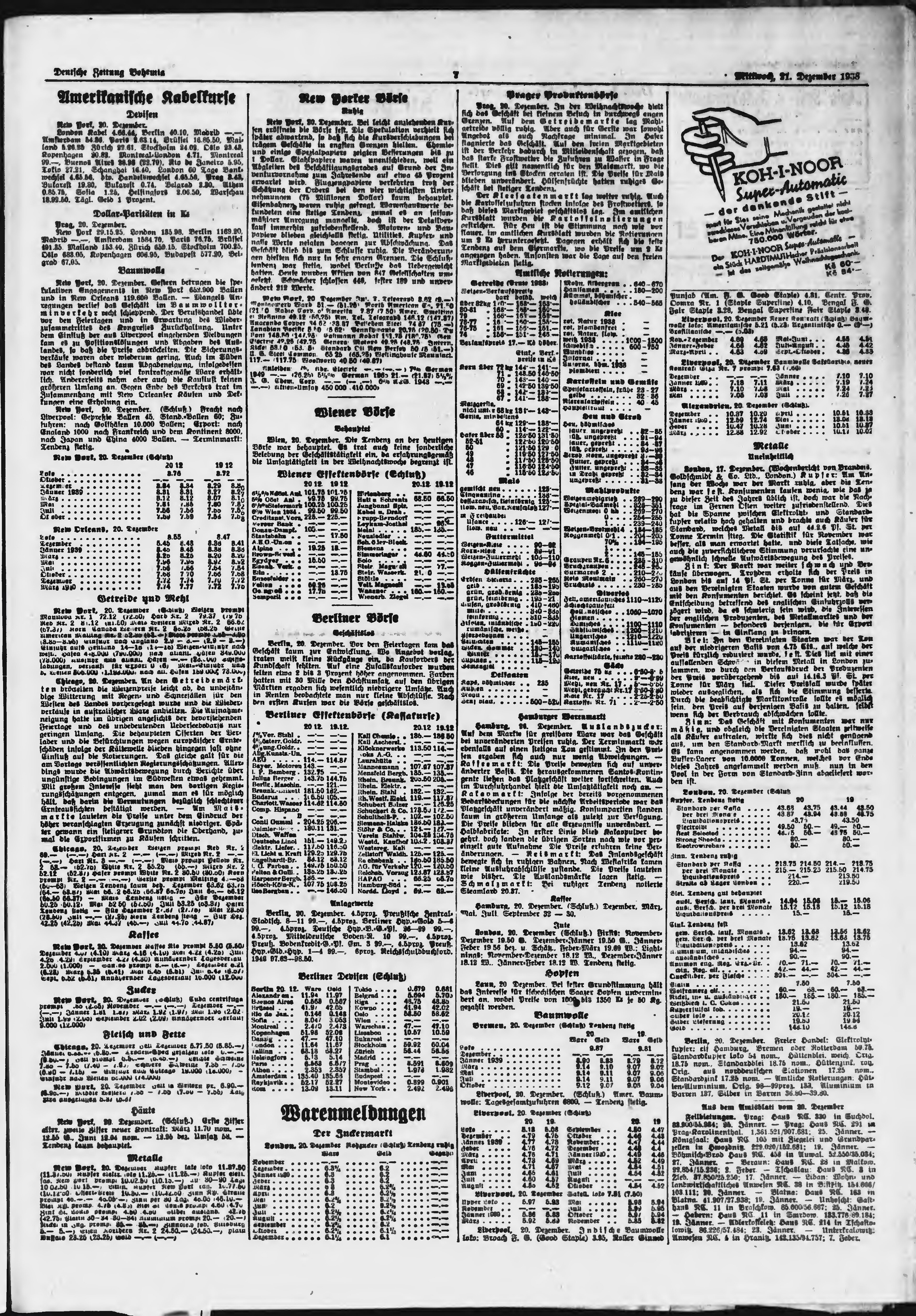 * Datum vydání výtisku: 21.12.1938 Číslo výtisku: 300 Poznámky k výtisku: ranní vydání;