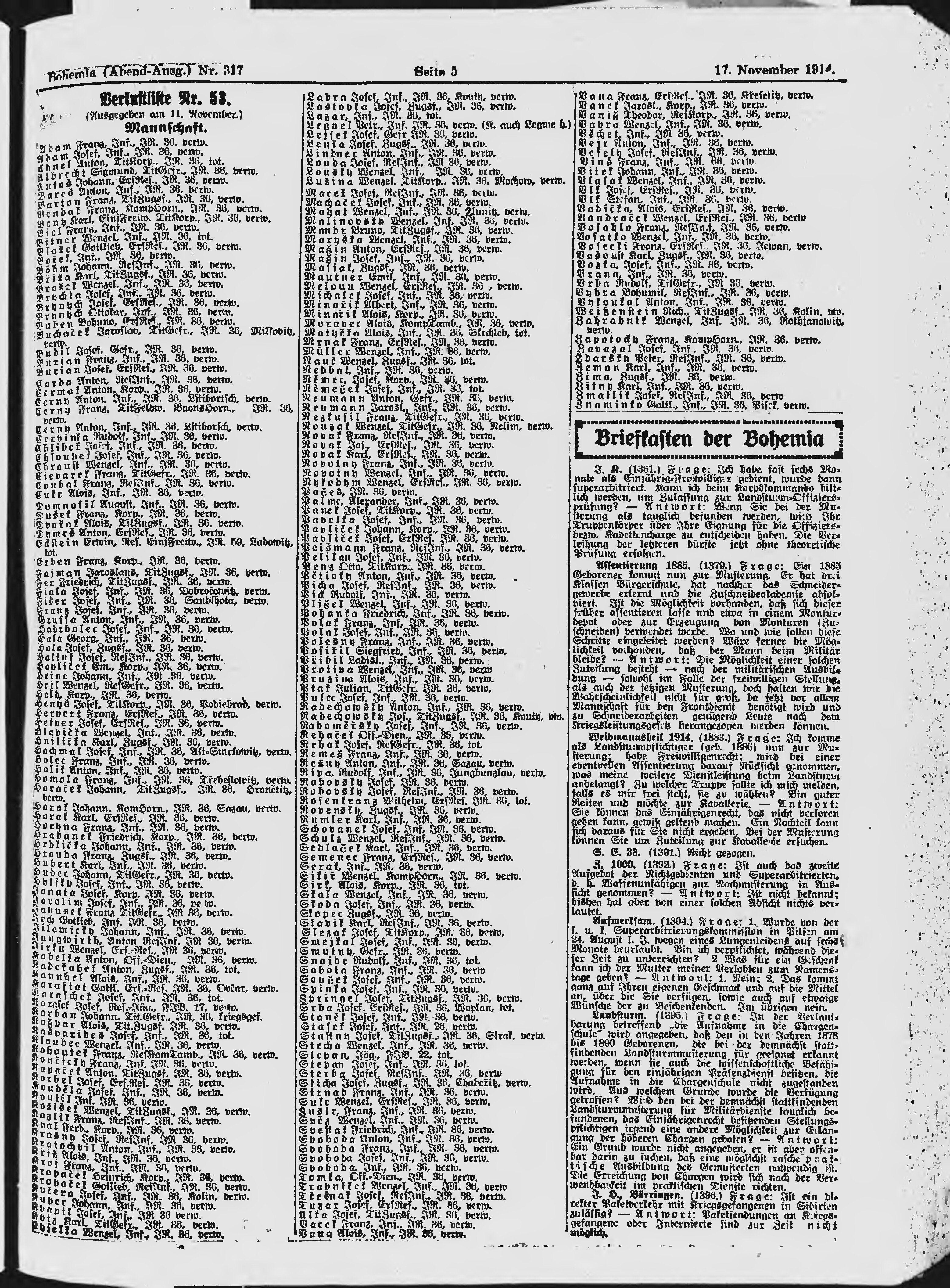 * Datum vydání výtisku: 17.11.1914 Číslo výtisku: 317 Poznámky k výtisku: večerní vydání;