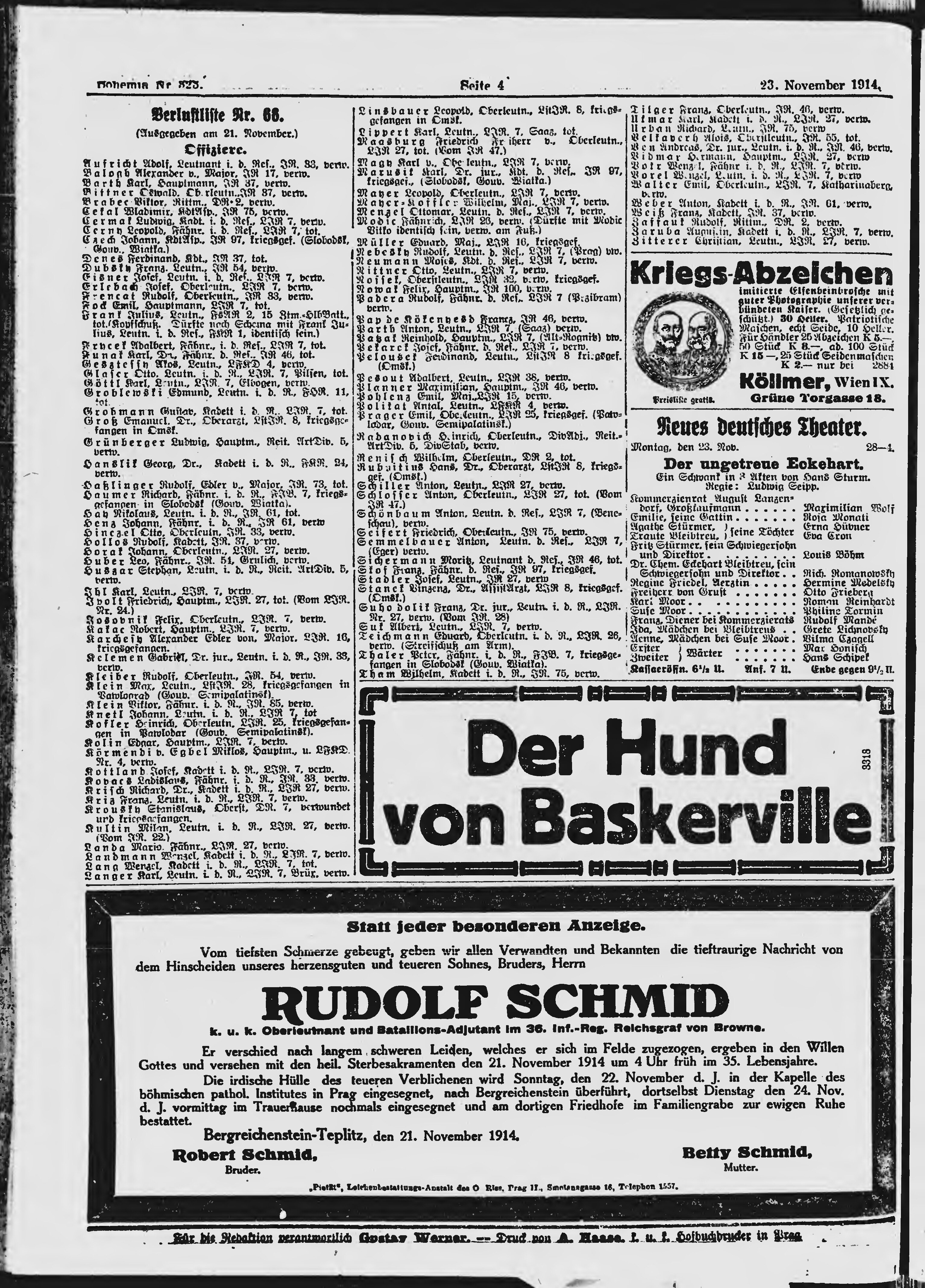 * Datum vydání výtisku: 23.11.1914 Číslo výtisku: 323 Poznámky k výtisku: polední vydání;