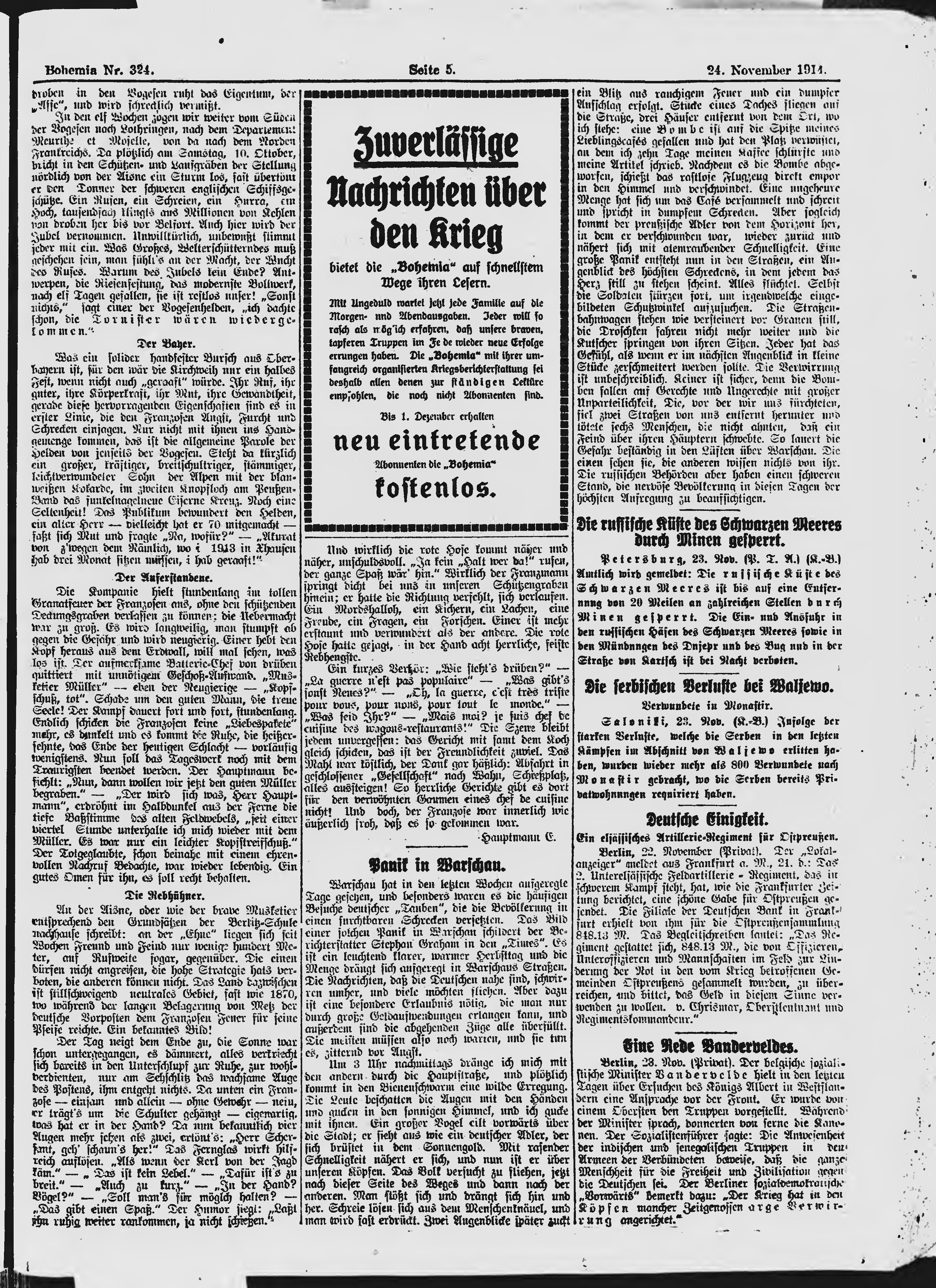 * Datum vydání výtisku: 24.11.1914 Číslo výtisku: 324 Poznámky k výtisku: ranní vydání;
