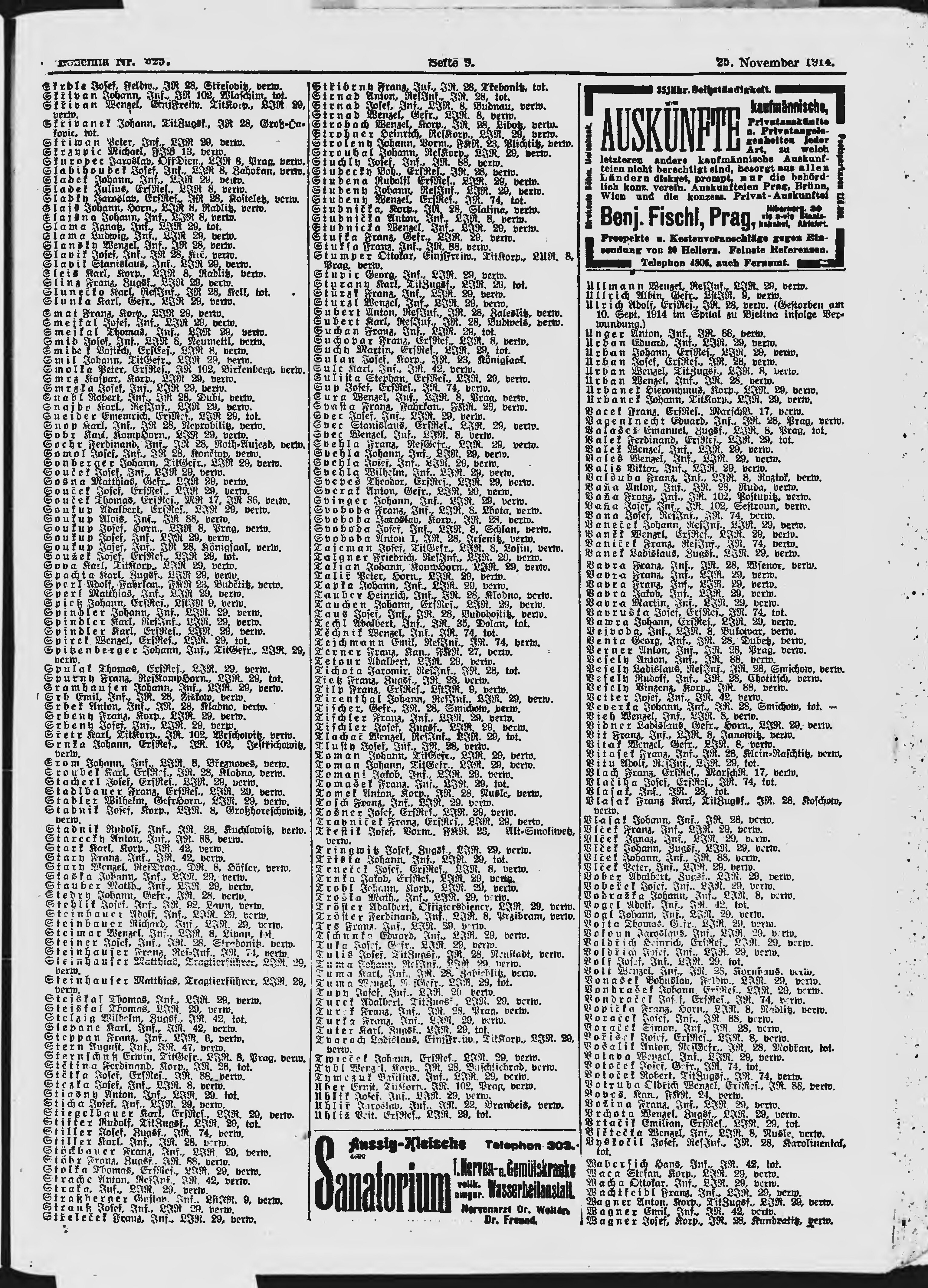 * Datum vydání výtisku: 25.11.1914 Číslo výtisku: 325 Poznámky k výtisku: ranní vydání;