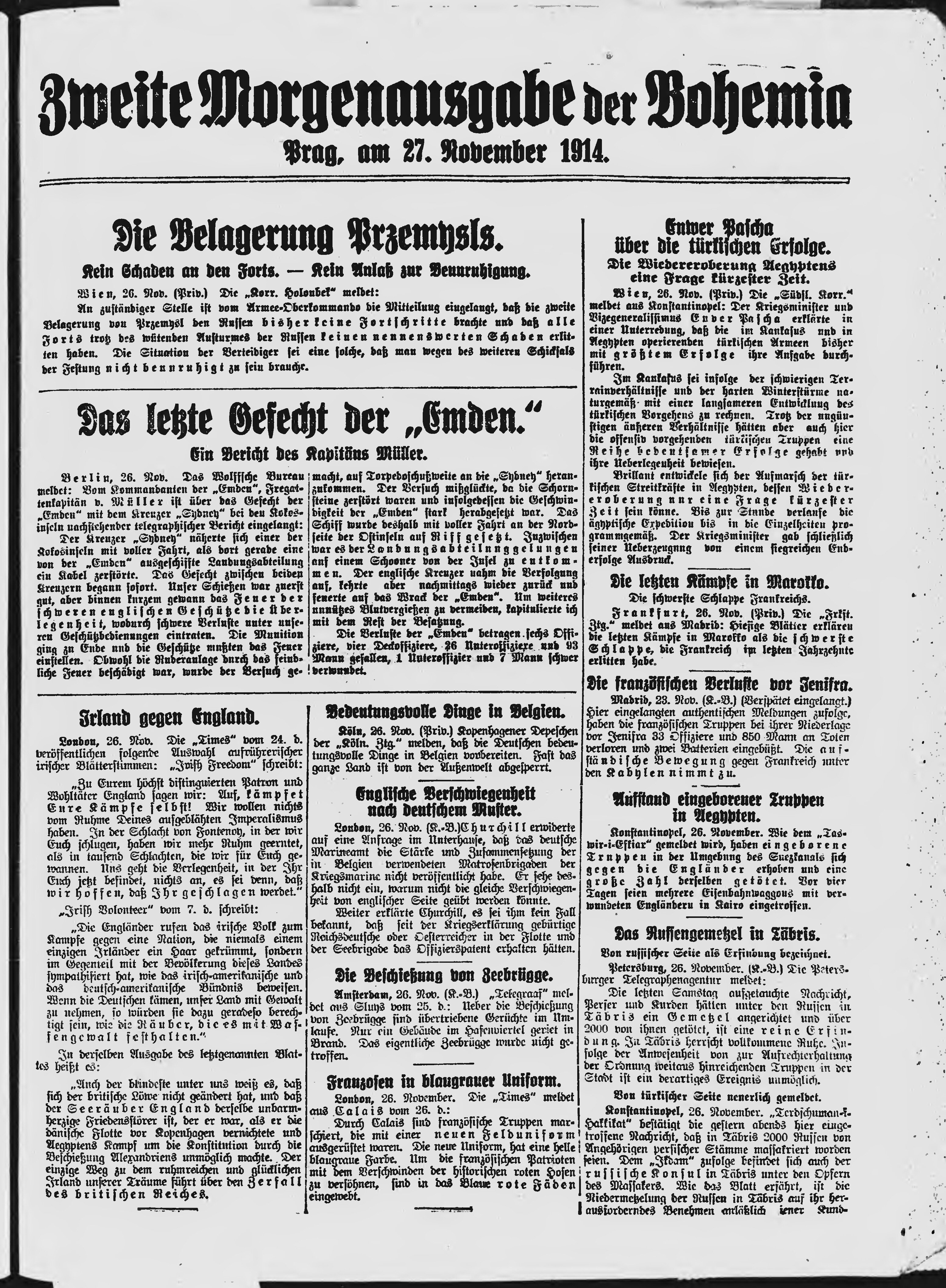 * Datum vydání výtisku: 27.11.1914 Číslo výtisku: 327 Poznámky k výtisku: druhé ranní vydání;
