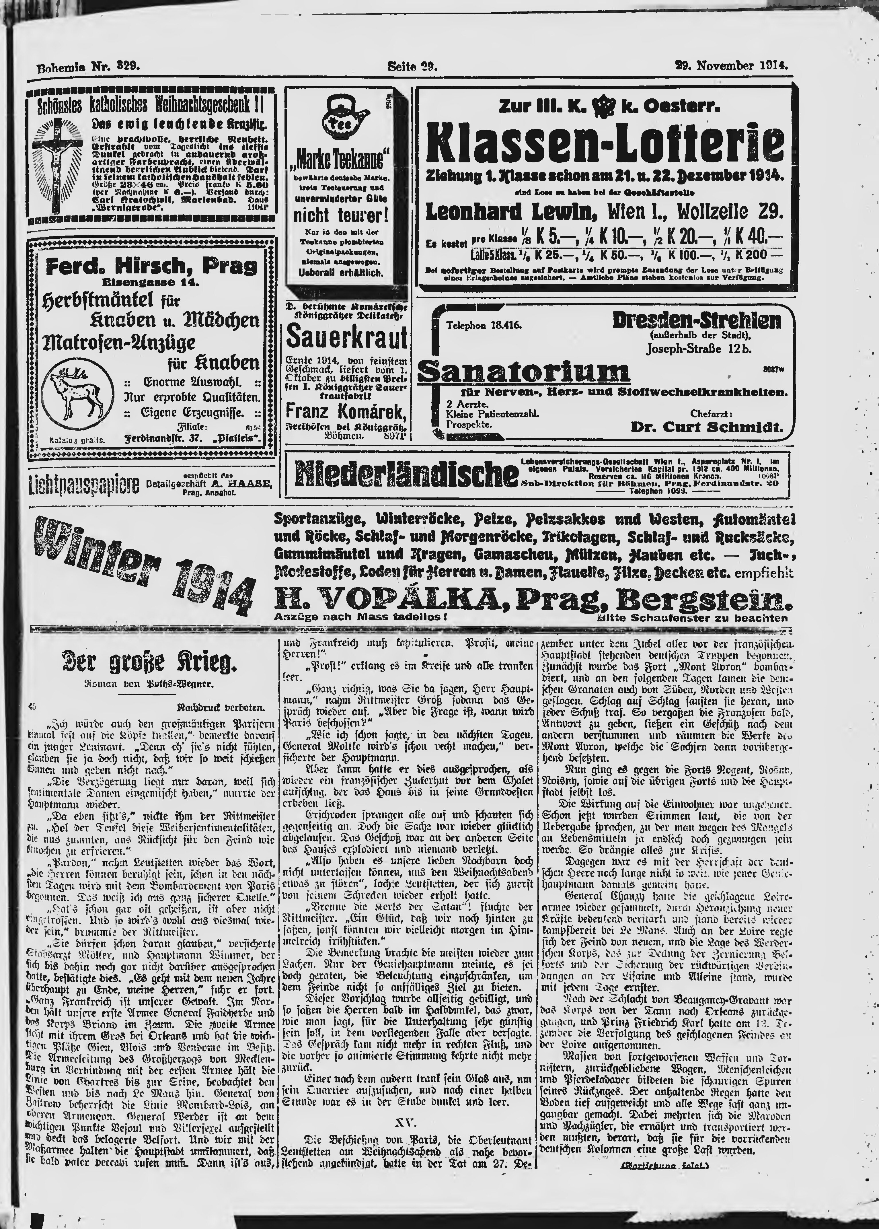 * Datum vydání výtisku: 29.11.1914 Číslo výtisku: 329 Poznámky k výtisku: ranní vydání;