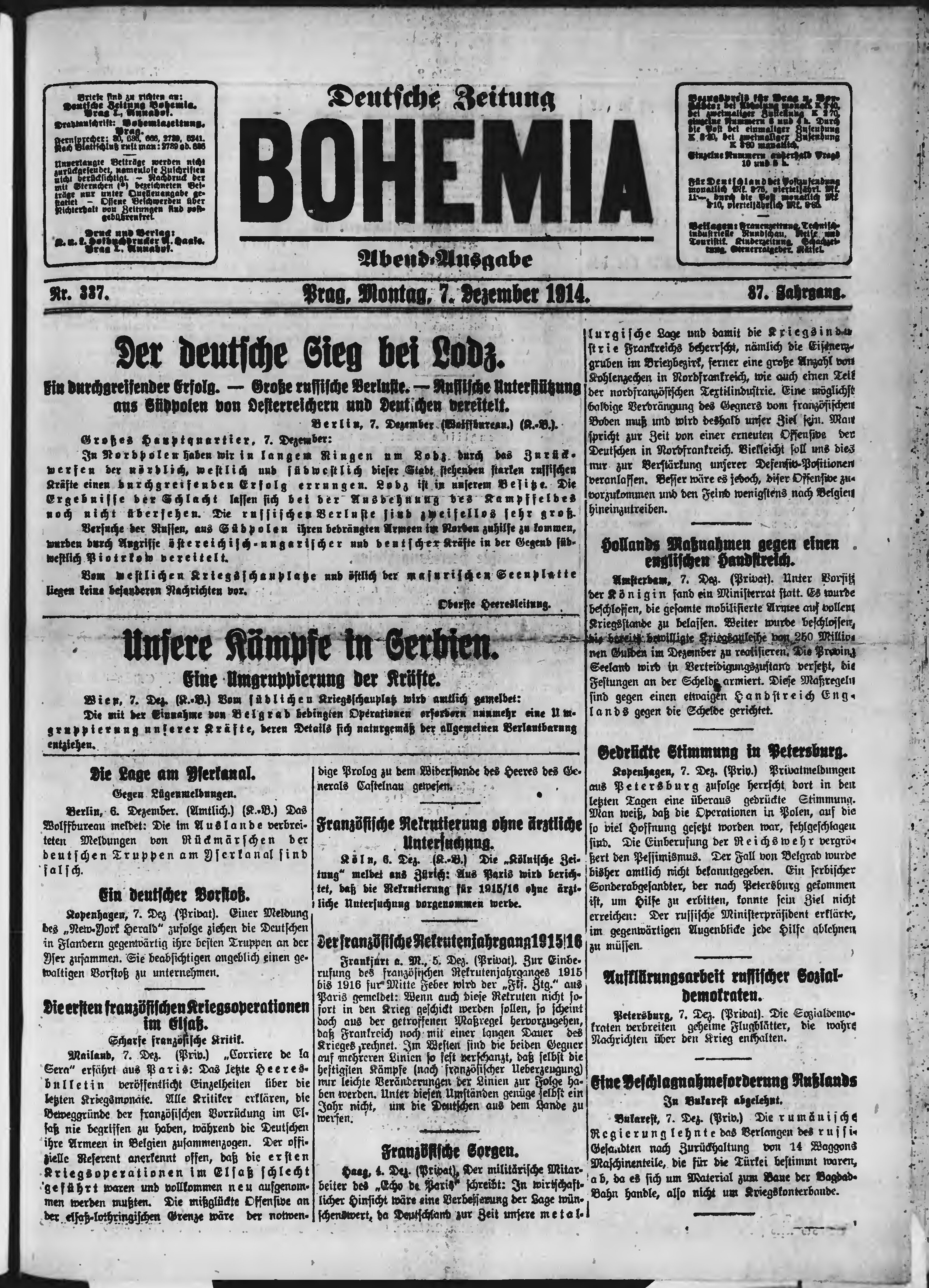 * Datum vydání výtisku: 7.12.1914 Číslo výtisku: 337 Poznámky k výtisku: večerní vydání;
