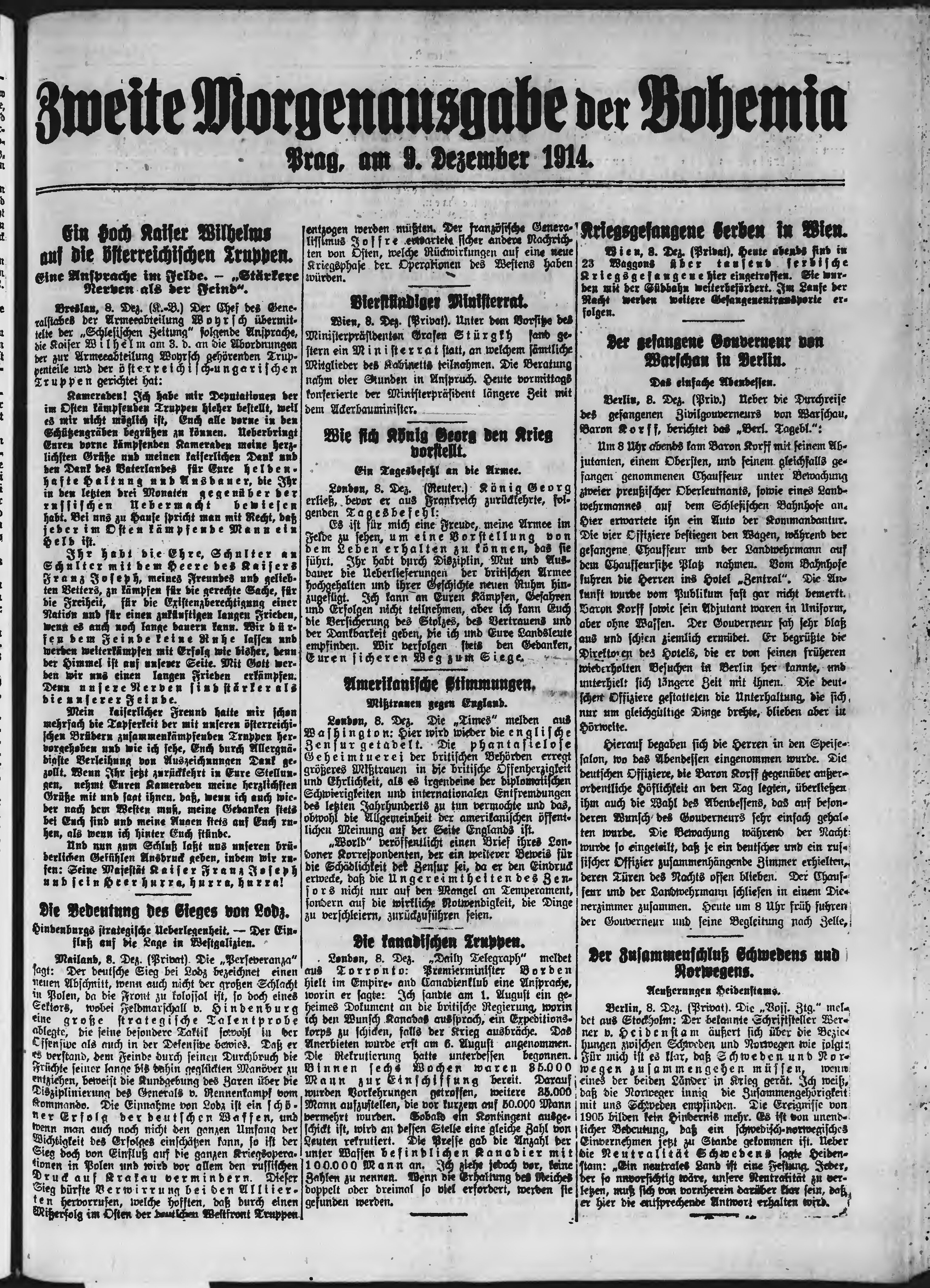 * Datum vydání výtisku: 9.12.1914 Číslo výtisku: 339 Poznámky k výtisku: druhé ranní vydání;