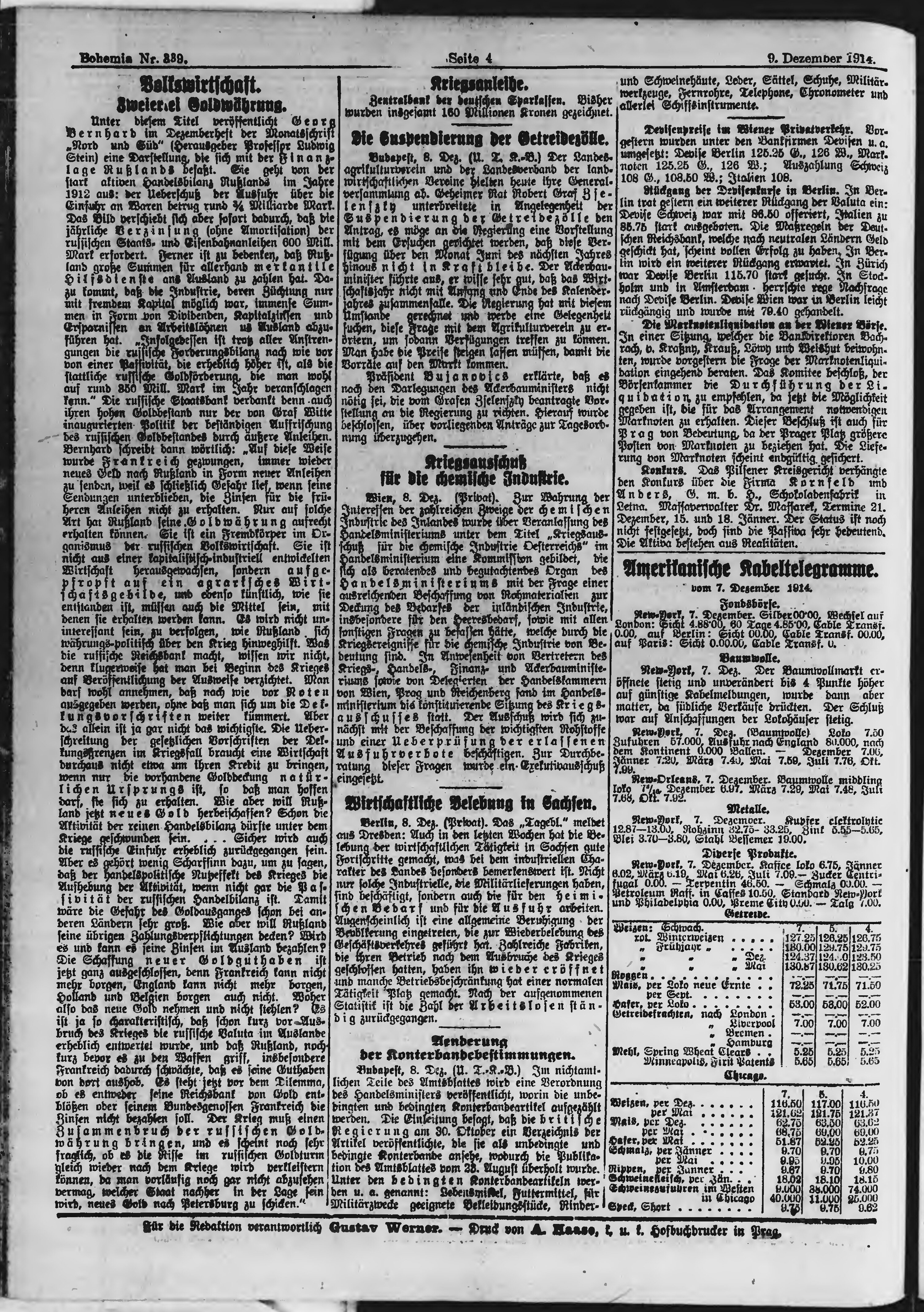 * Datum vydání výtisku: 9.12.1914 Číslo výtisku: 339 Typ výtisku: příloha