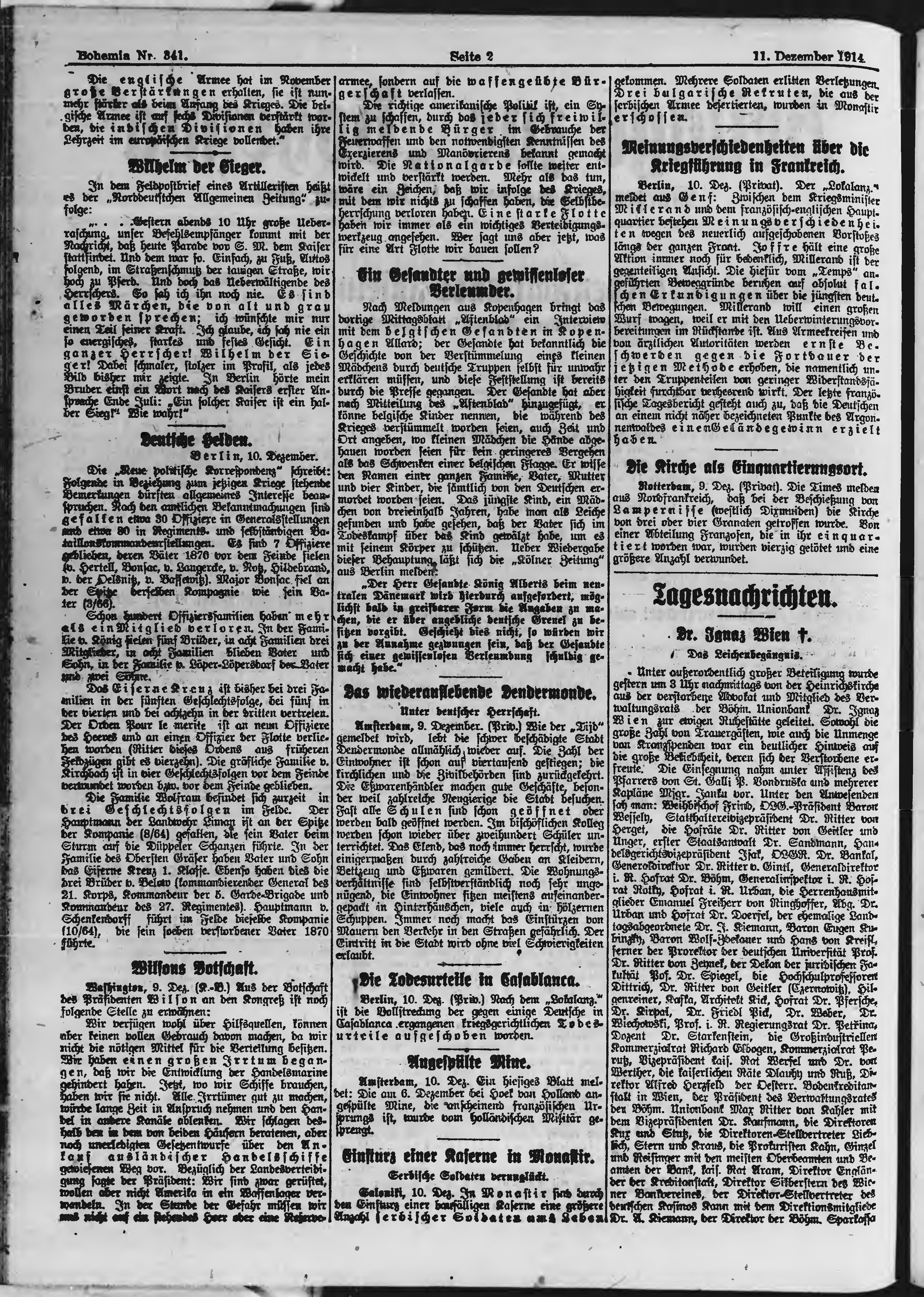 * Datum vydání výtisku: 11.12.1914 Číslo výtisku: 341 Typ výtisku: příloha