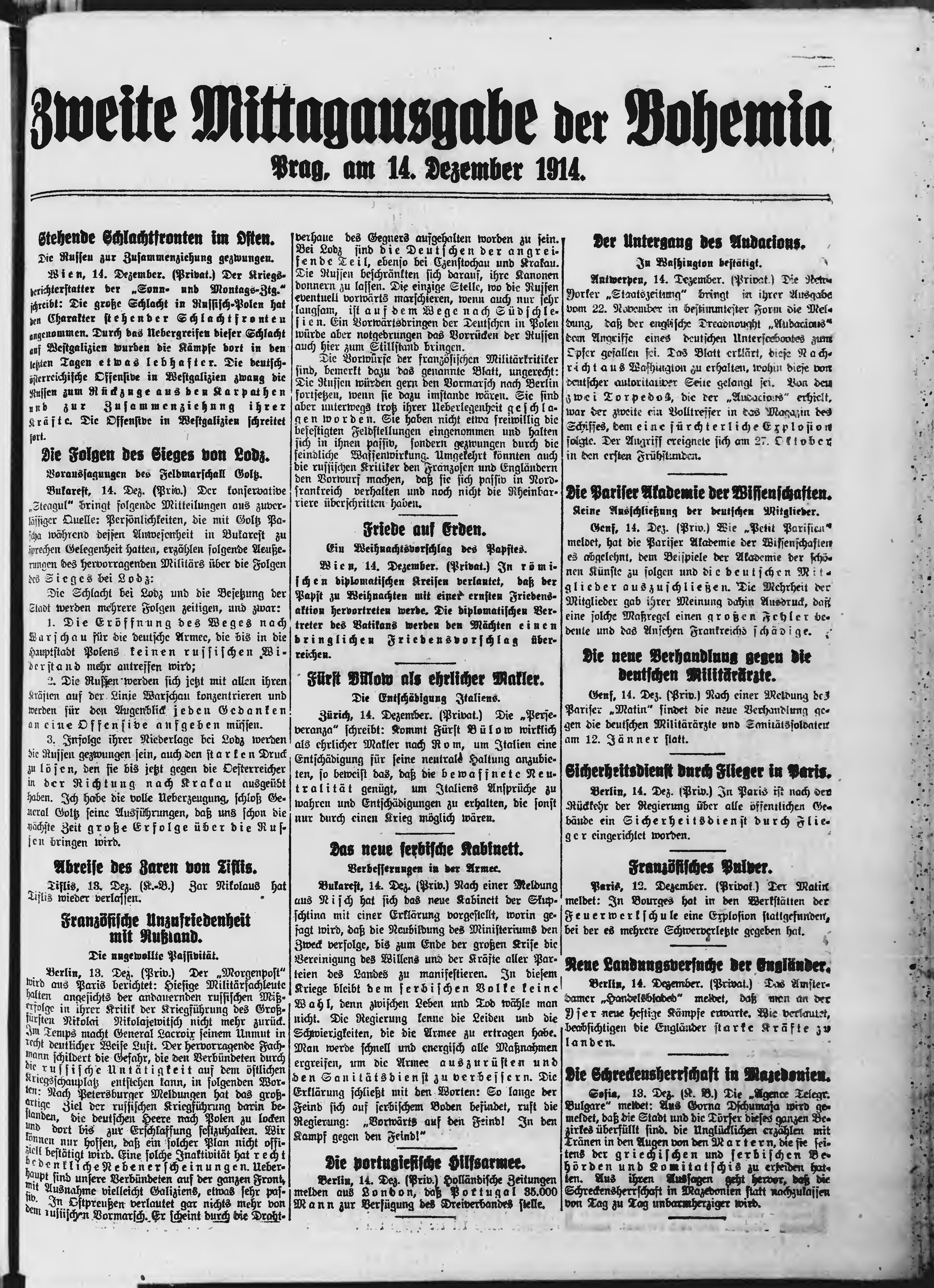 * Datum vydání výtisku: 14.12.1914 Číslo výtisku: 344 Poznámky k výtisku: druhé polední vydání;