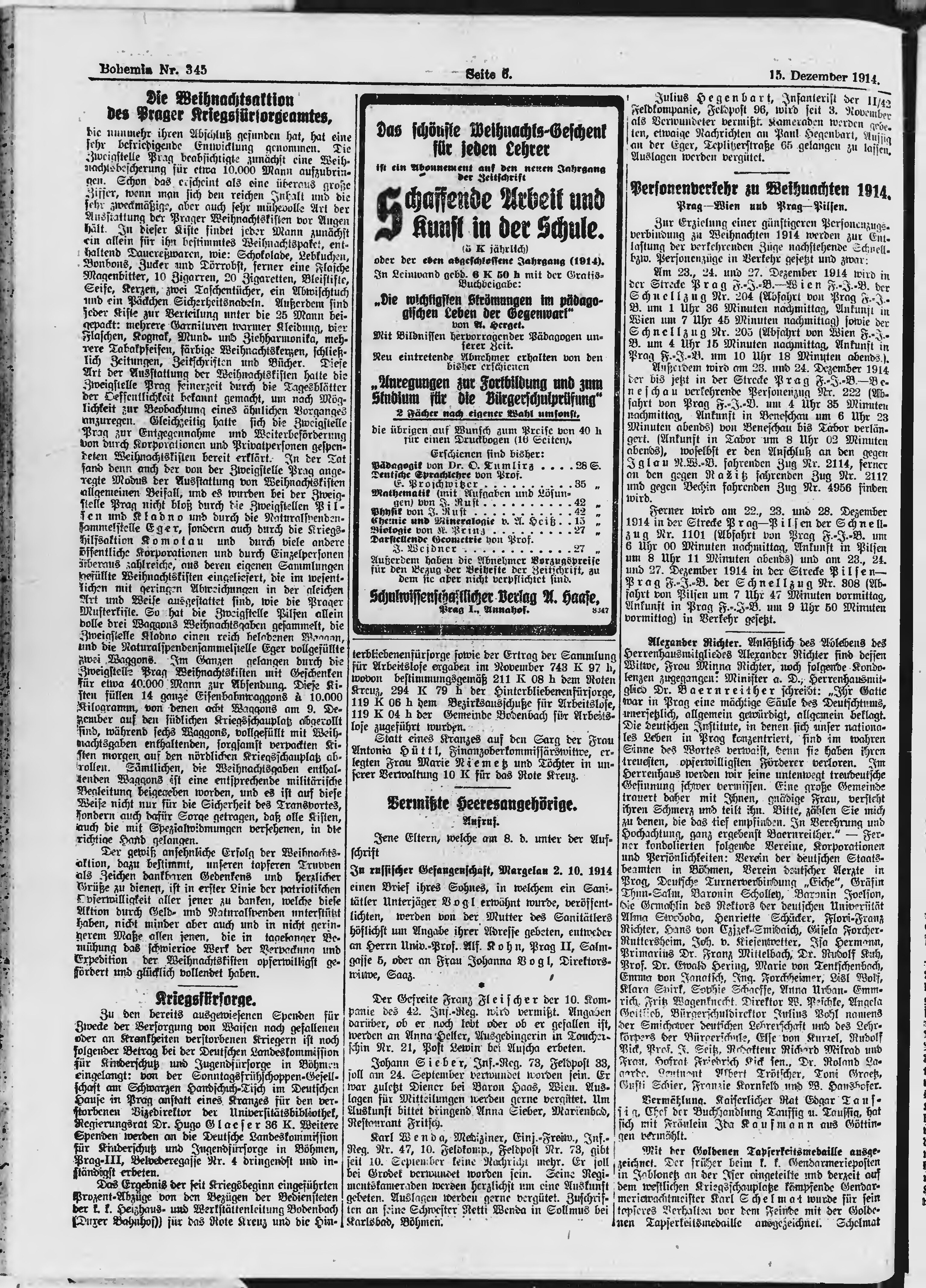 * Datum vydání výtisku: 15.12.1914 Číslo výtisku: 345 Poznámky k výtisku: ranní vydání;