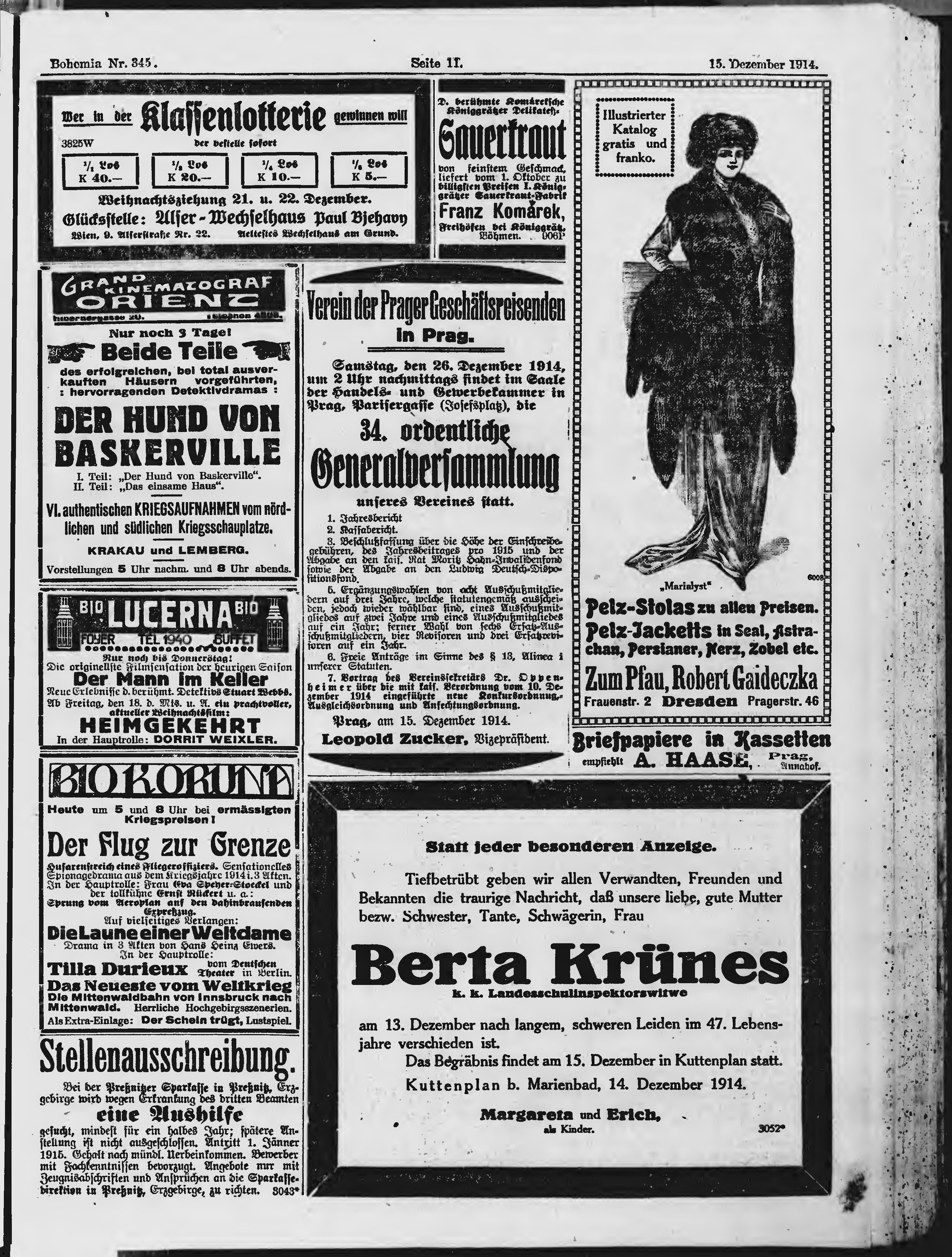 * Datum vydání výtisku: 15.12.1914 Číslo výtisku: 345 Poznámky k výtisku: ranní vydání;