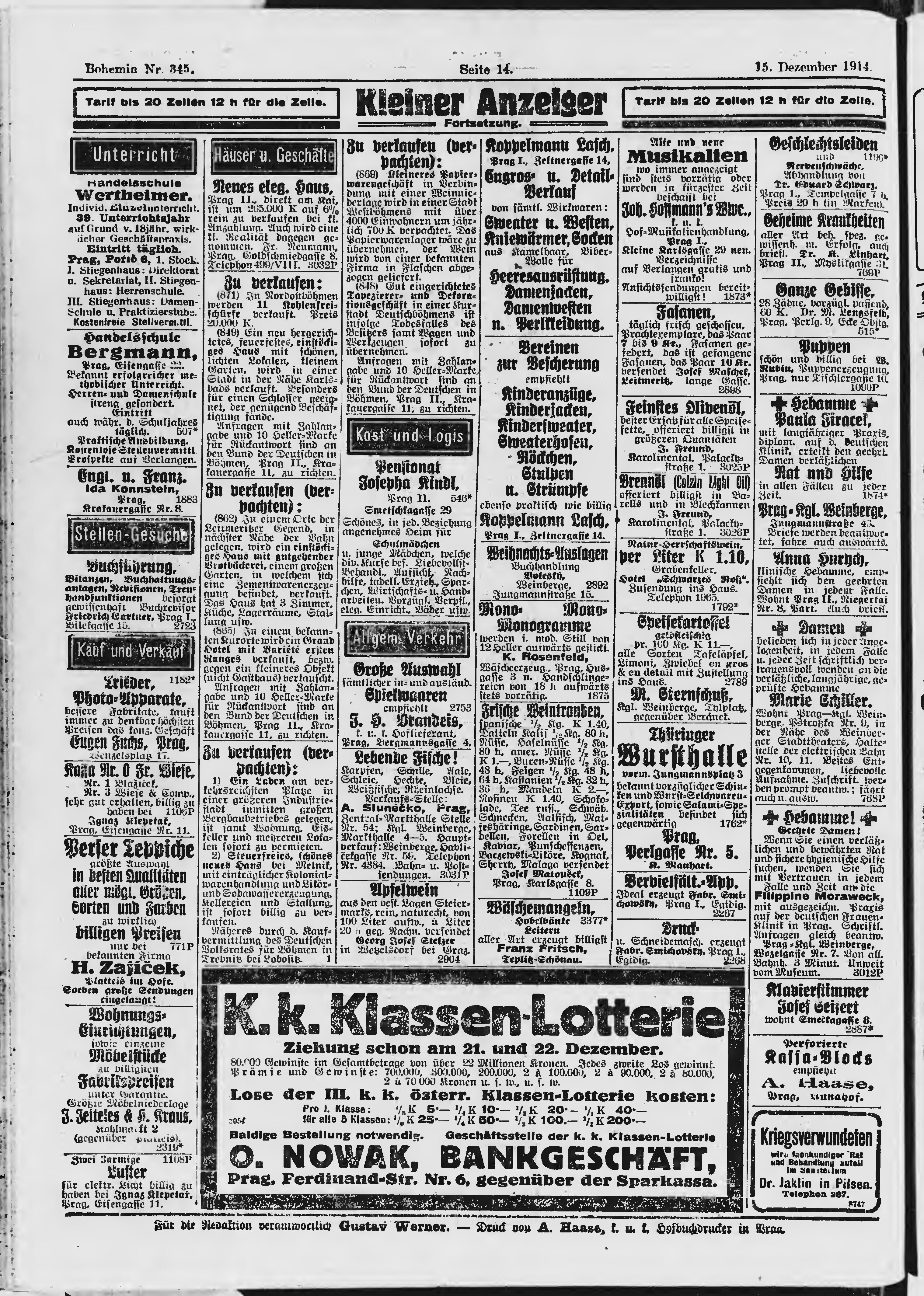 * Datum vydání výtisku: 15.12.1914 Číslo výtisku: 345 Poznámky k výtisku: ranní vydání;