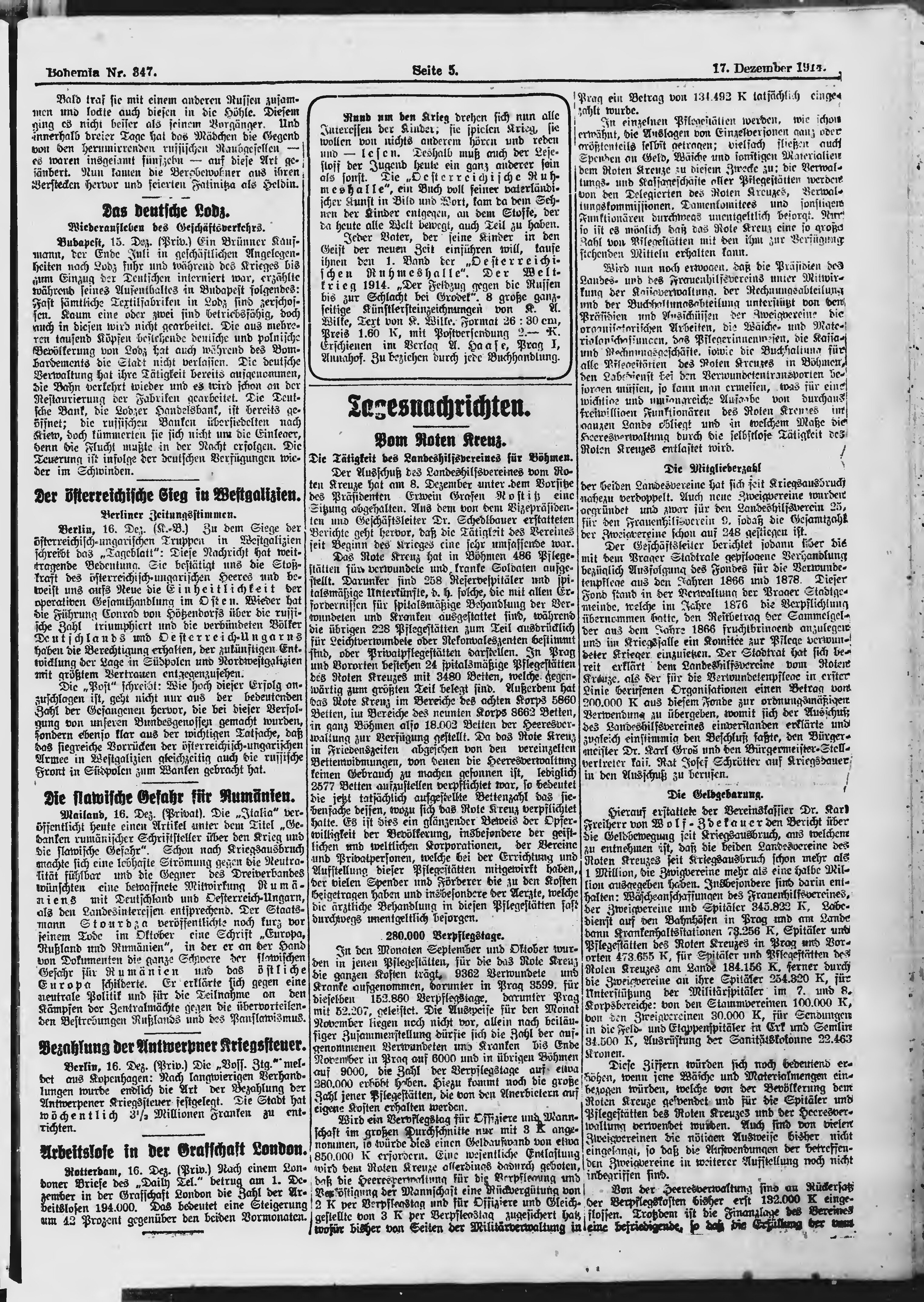 * Datum vydání výtisku: 17.12.1914 Číslo výtisku: 347 Poznámky k výtisku: ranní vydání;