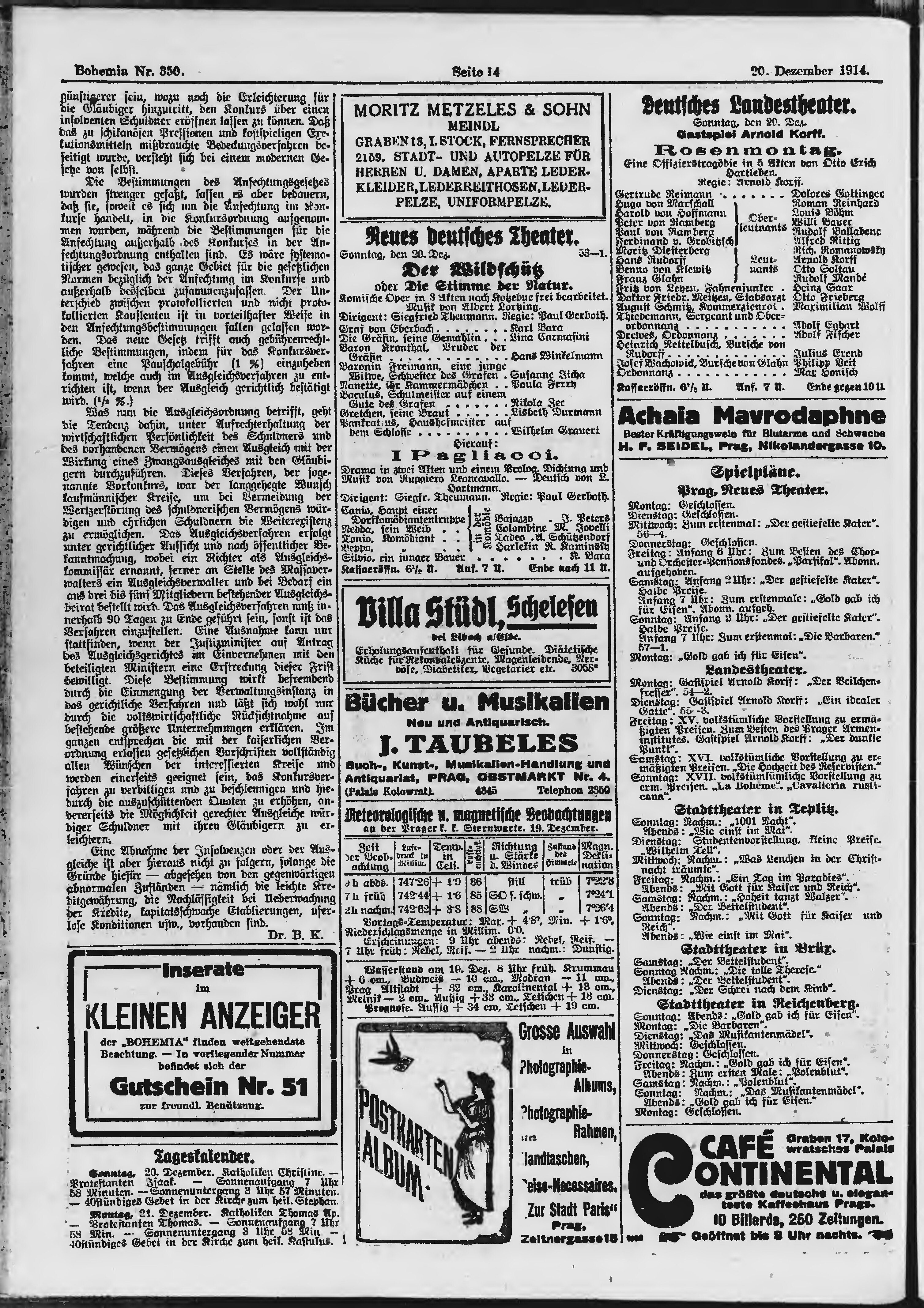 * Datum vydání výtisku: 20.12.1914 Číslo výtisku: 350 Poznámky k výtisku: ranní vydání;