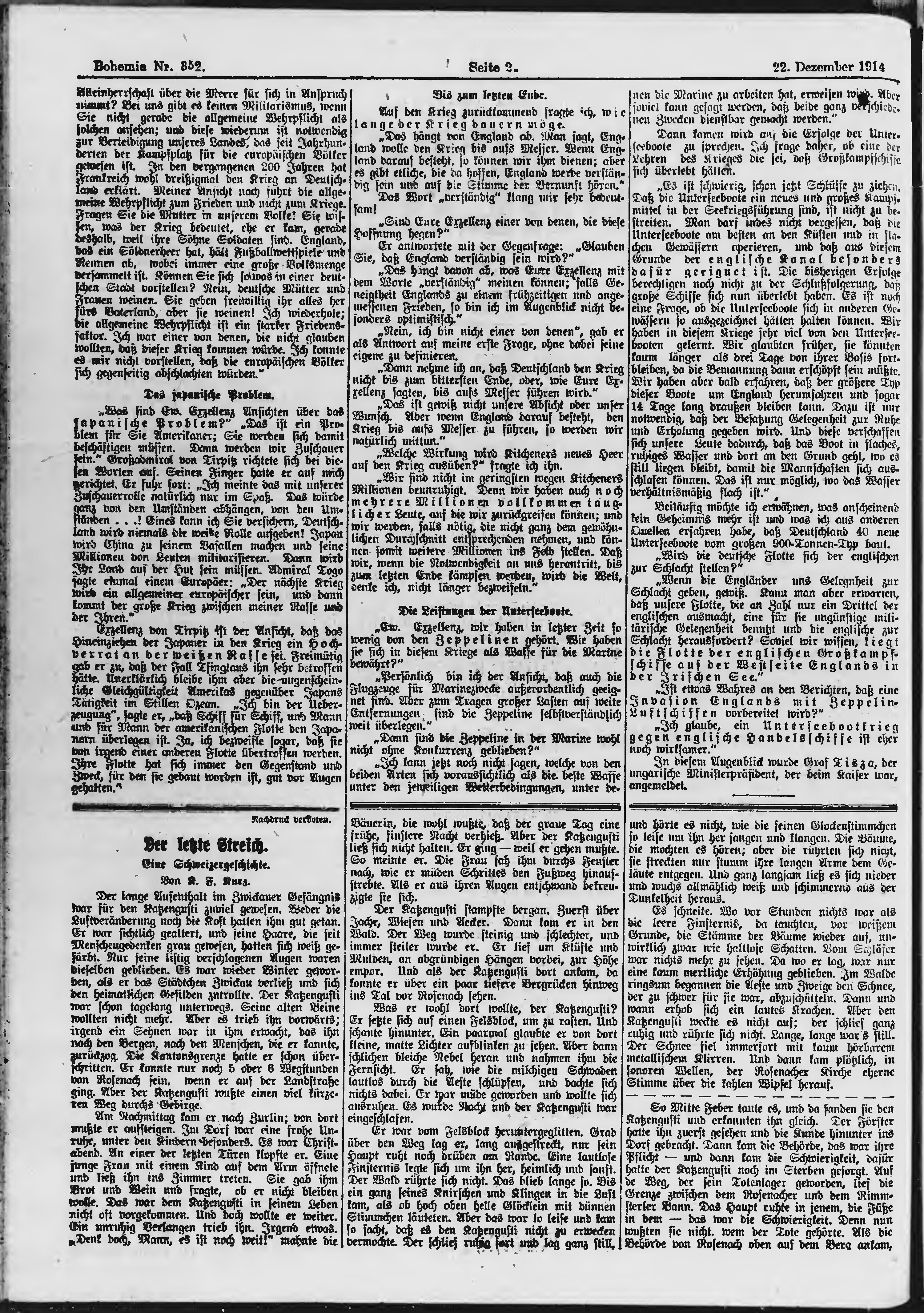 * Datum vydání výtisku: 22.12.1914 Číslo výtisku: 352 Poznámky k výtisku: ranní vydání;